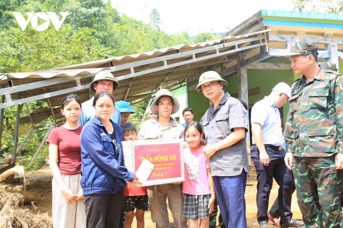 Phó Thủ tướng ghi nhận tinh thần trách nhiệm, sự nỗ lực không quản ngại khó khăn, hiểm nguy của các lực lượng, nhất là lực lượng công an, quân đội, cấp ủy, chính quyền địa phương trong việc hỗ trợ, giúp đỡ nhân dân sớm vượt qua thiên tai, ổn định cuộc sống. Đồng thời đề nghị tỉnh, xã khẩn trương rà soát, bố trí nơi ở an toàn, hỗ trợ kịp thời lương thực, nhu yếu phẩm cho các hộ bị thiệt hại nặng.