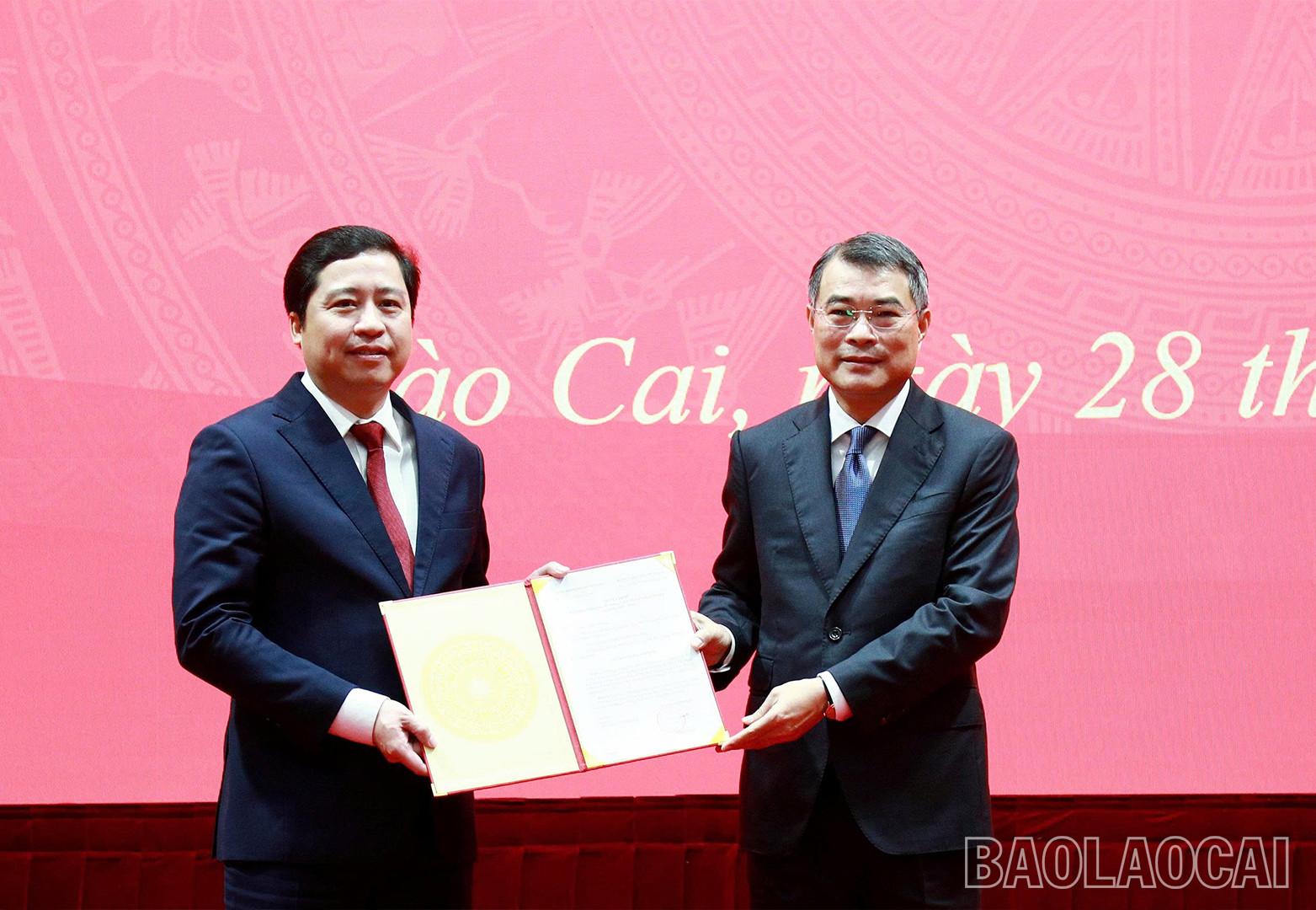 Trưởng Ban Tổ chức Trung ương Lê Minh Hưng trao quyết định cho ông Dương Quốc Huy. Ảnh: Báo Lào Cai