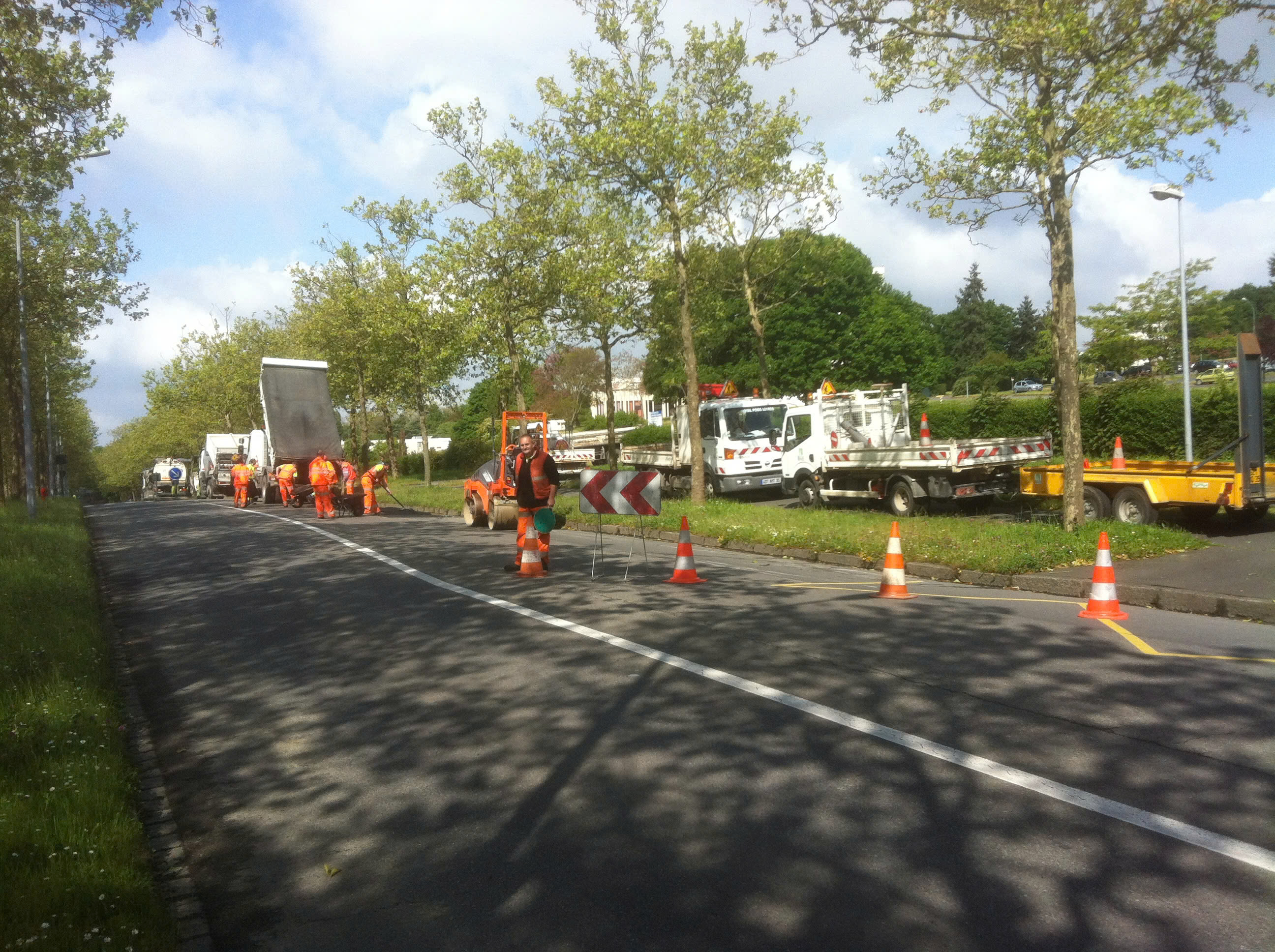 Công tác thi công tại một đoạn đường ở TP Rennes (Pháp) được tổ chức theo quy trình khép kín, nhanh, gọn và đảm bảo vệ sinh môi trường, hạn chế tối đa ảnh hưởng đến giao thông và đời sống người dân. (Ảnh: NVCC)
