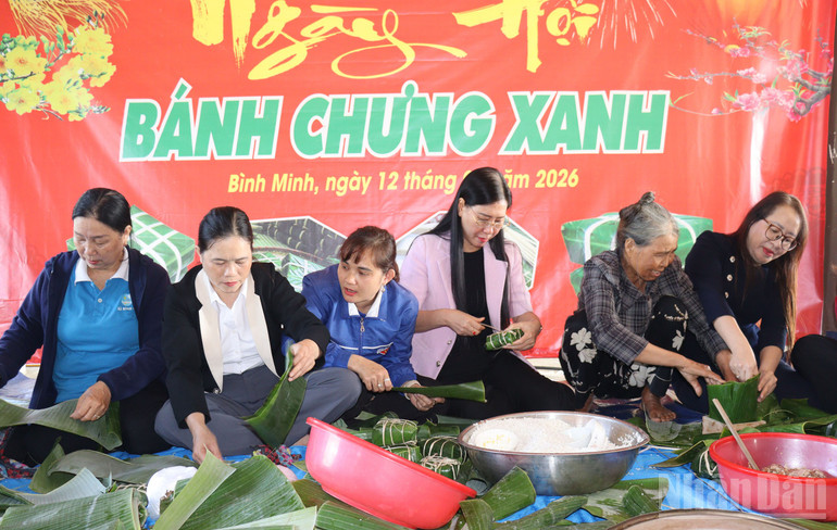 Đồng chí Bùi Thị Quỳnh Vân chung vui cùng Ngày hội bánh chưng xanh với bà con thôn Thọ An, xã Bình Minh.