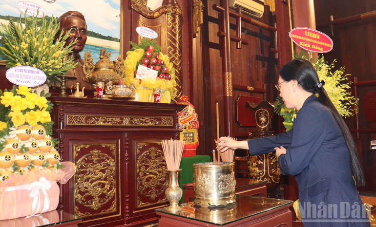 Đồng chí Bùi Thị Quỳnh Vân thành kính dâng hương tưởng nhớ, bày tỏ lòng kính trọng và biết ơn sâu sắc công lao to lớn của Thủ tướng Phạm Văn Đồng