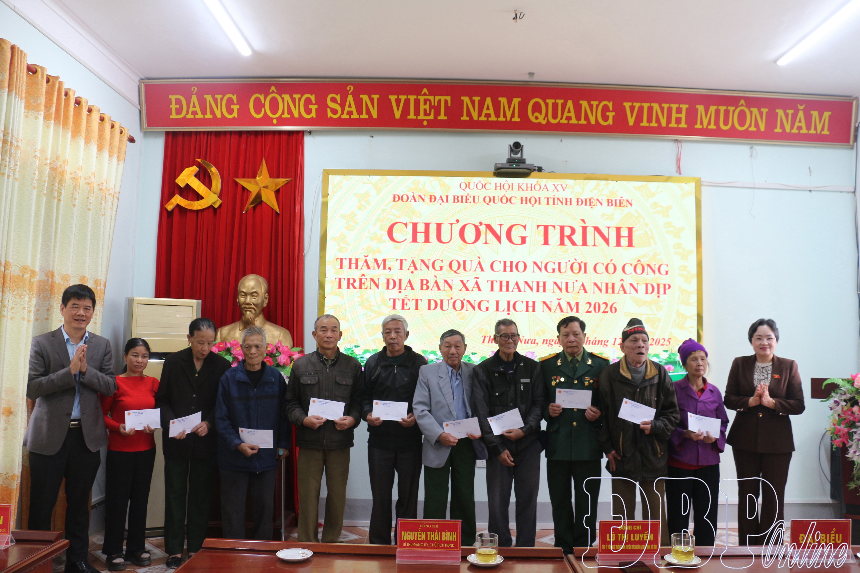 Nhân dịp Tết Dương lịch năm 2026, đồng chí Lò Thị Luyến, Phó Trưởng đoàn chuyên trách, phụ trách Đoàn ĐBQH tỉnh đã thăm và tặng 57 suất quà, mỗi suất trị giá 1 triệu đồng cho người có công với cách mạng trên địa bàn xã Thanh Nưa.
