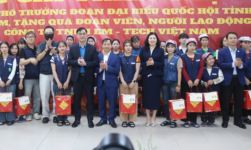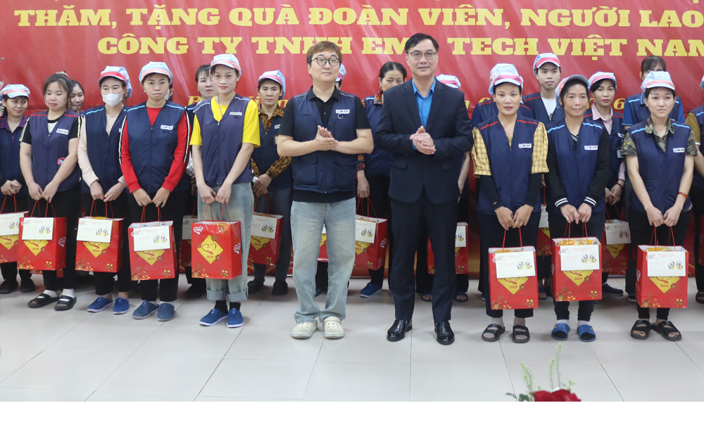 Tại Công ty trách nhiệm hữu hạn Em-Tech Việt Nam, đồng chí Phó Trưởng Đoàn đại biểu Quốc hội tỉnh Trần Thị Vân trực tiếp tham quan xưởng sản xuất, thăm hỏi điều kiện làm việc và đời sống của công nhân lao động trong Công ty. Đồng chí chúc Tết, trao quà tặng của Tỉnh ủy, HĐND, UBND, Ủy ban MTTQ tỉnh cho tập thể công ty cùng 100 suất quà cho các đoàn viên, công nhân lao động có hoàn cảnh khó khăn.