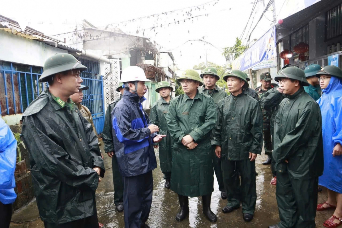 Đại tá Phan Đại Nghĩa, Phó Tư lệnh Quân khu V (thứ 3 từ trái sang) kiểm tra thực tế tại khu dân cư kiệt 161 Mẹ Suốt