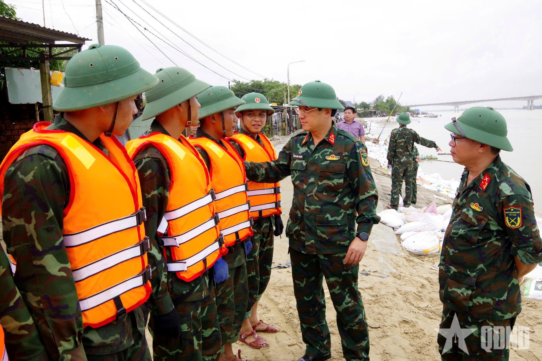 Tại tuyến kè biển An Lương (xã Duy Nghĩa), nơi bị sạt lở nghiêm trọng, đồng chí Phó tư lệnh, Tham mưu trưởng Quân khu 5 đã kiểm tra hiện trường, chỉ đạo các lực lượng triển khai biện pháp khắc phục khẩn cấp.