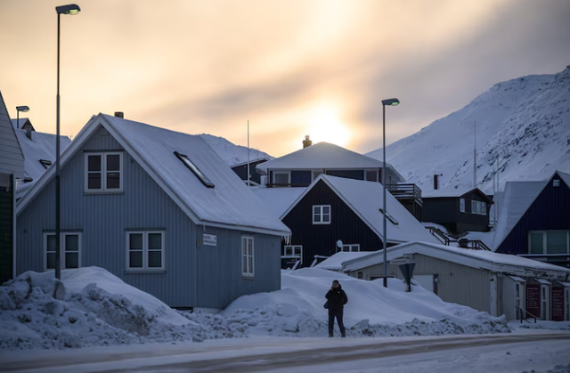 Mặt trời mọc trên đỉnh núi tại Nuuk, Greenland, tháng 3/2025. Ảnh: Getty