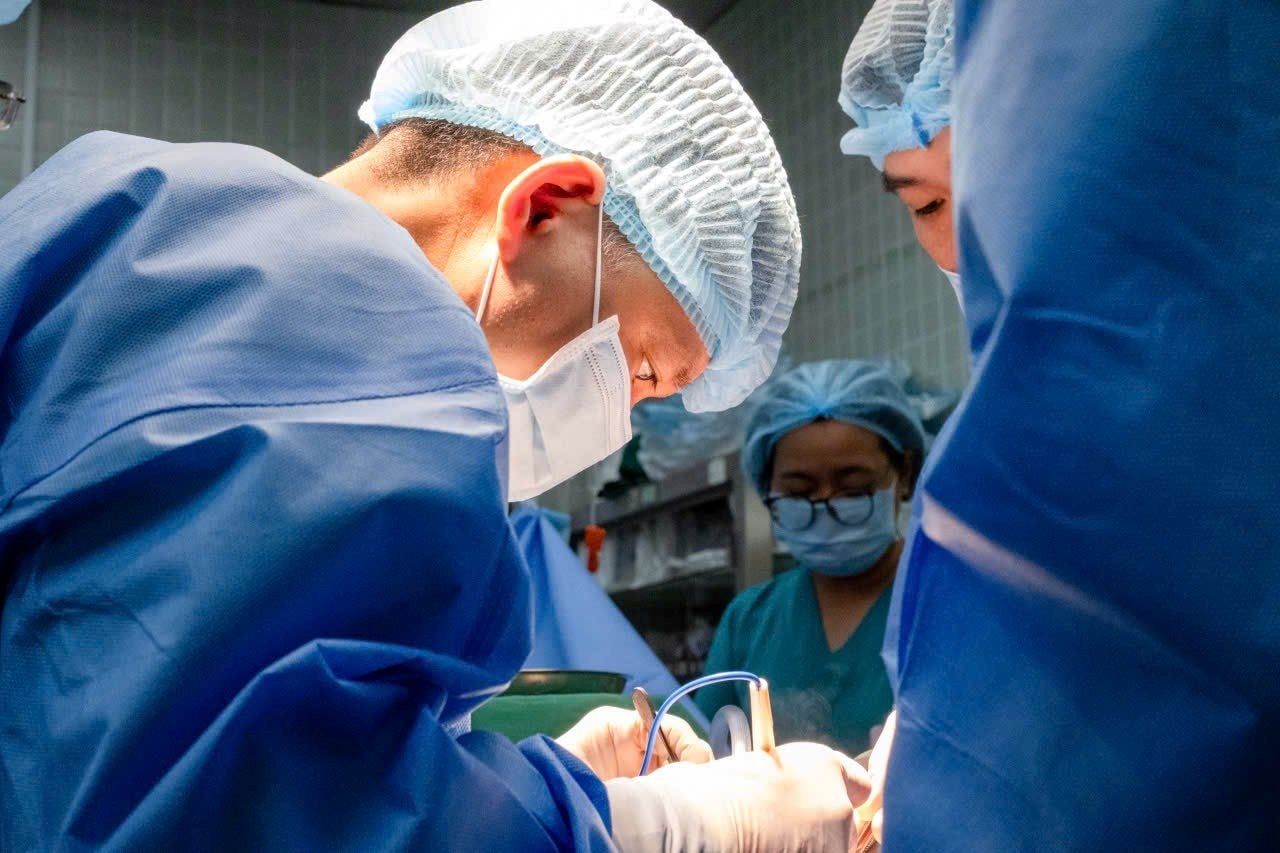 Sau khi cắt bỏ diện rộng, các bác sĩ vi phẫu chuyển vạt tự do từ chân để tái tạo khuyết hổng lớn vùng mặt, tái lập đường thở mũi và khẩu cái.