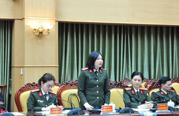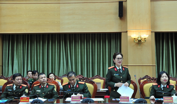 Đại diện lãnh đạo các phòng nghiệp vụ thuộc Cục Quản lý xuất nhập cảnh phát biểu tại hội nghị.