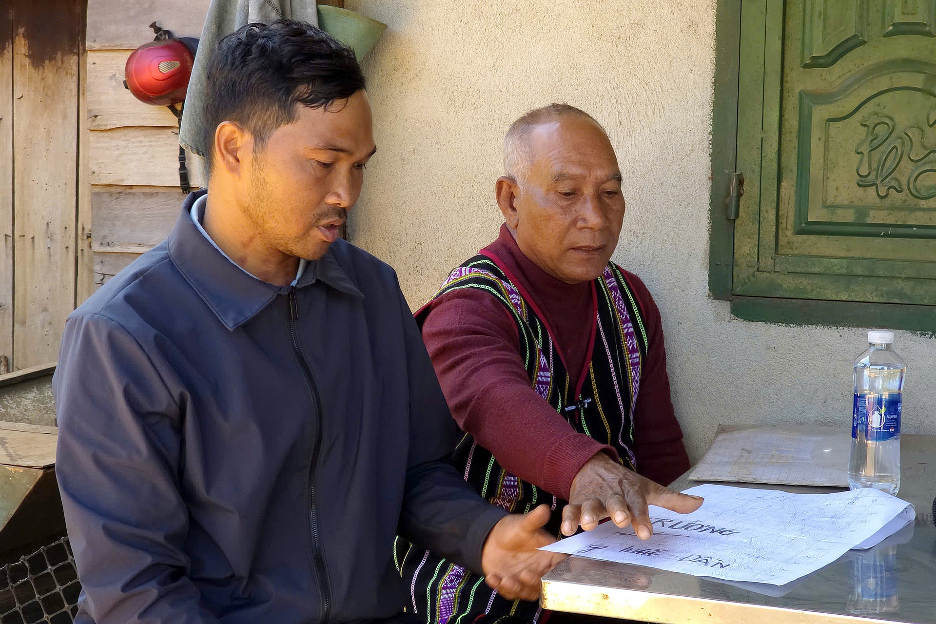 Ông Điểu N’Jrơ (bên phải) và anh Điểu Suynh cho biết, nguyện vọng nhiều năm qua của người dân bon Bu N’Đóh là được cấp GCNQSDĐ