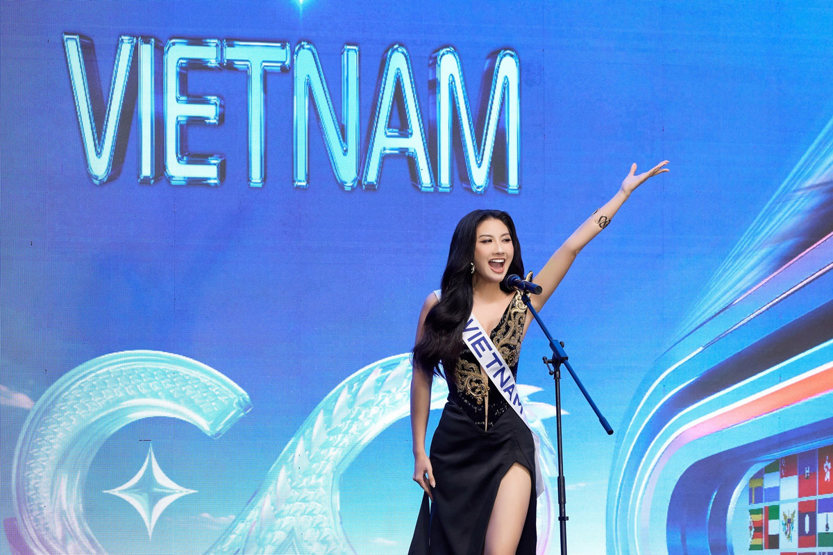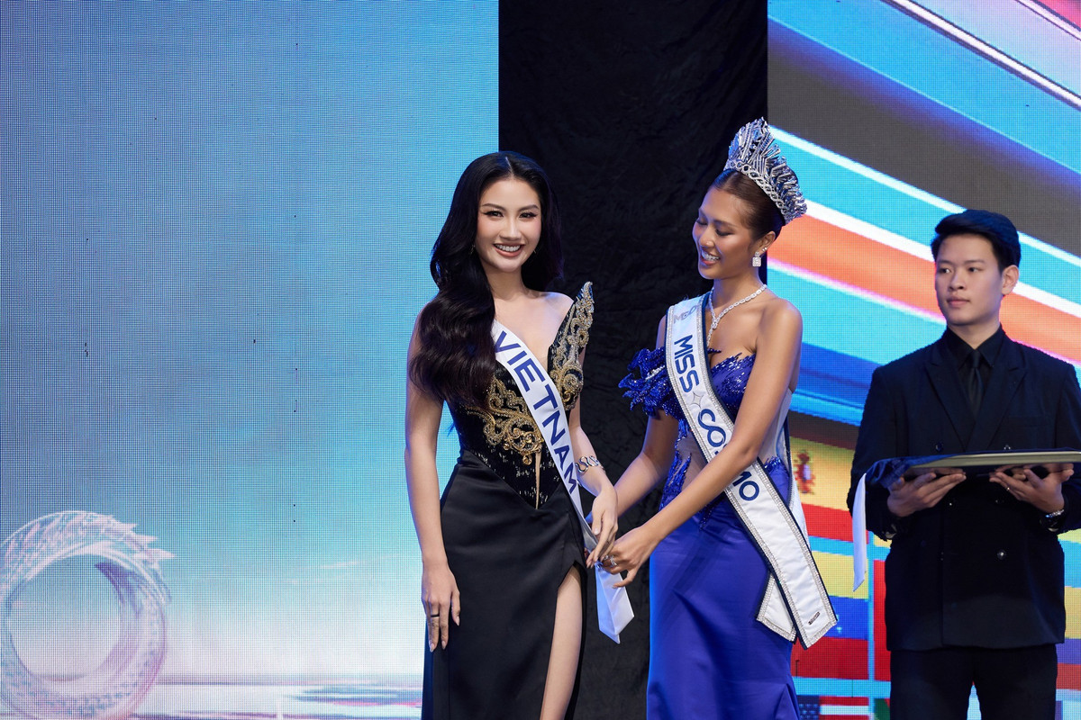 Cuộc thi Miss Cosmo 2025 đang diễn ra tại Việt Nam. Hoa hậu Phương Linh là đại diện Việt Nam. Trong buổi nhận sash, Phương Linh diện thiết kế Phù Vân Long Ẩn.