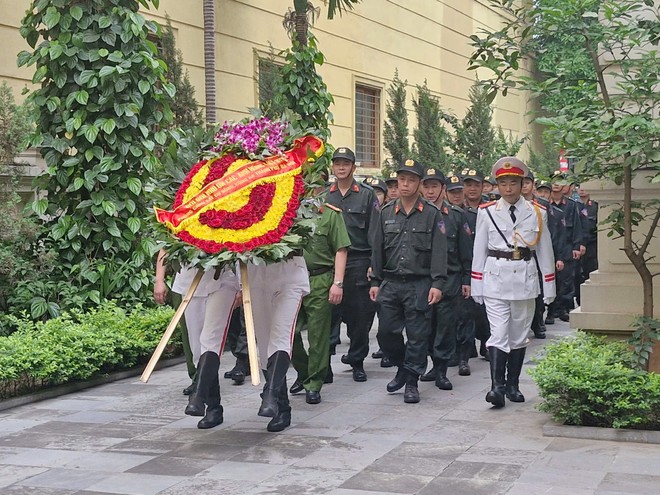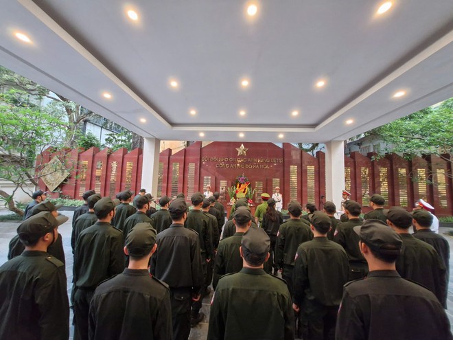Trong không khí trang nghiêm, đoàn công tác đã thành kính dâng hoa, dâng hương, bày tỏ lòng biết ơn sâu sắc đối với những hy sinh to lớn của các anh hùng liệt sỹ Công an Thủ đô đã ngã xuống vì sự nghiệp giải phóng dân tộc, thống nhất đất nước và bảo vệ an ninh Tổ quốc.