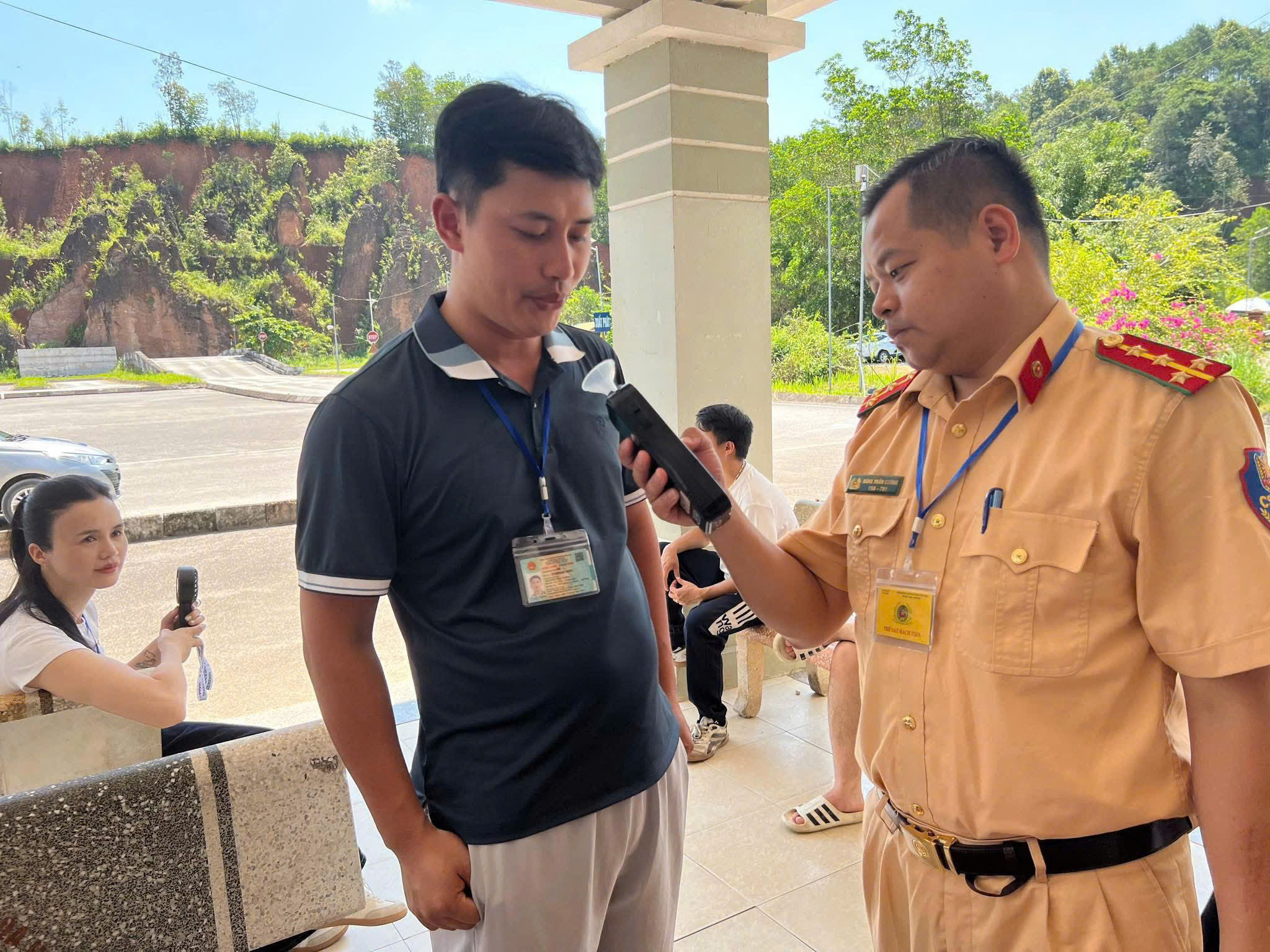 Lực lượng Cảnh sát Giao thông, Công an tỉnh kiểm tra nồng độ cồn đối với thí sinh trước khi bước vào phần thi sa hình.
