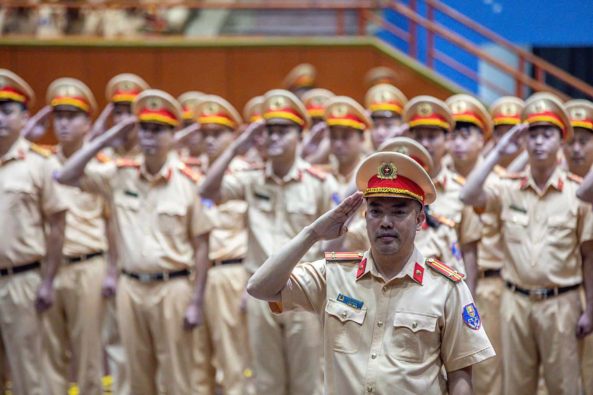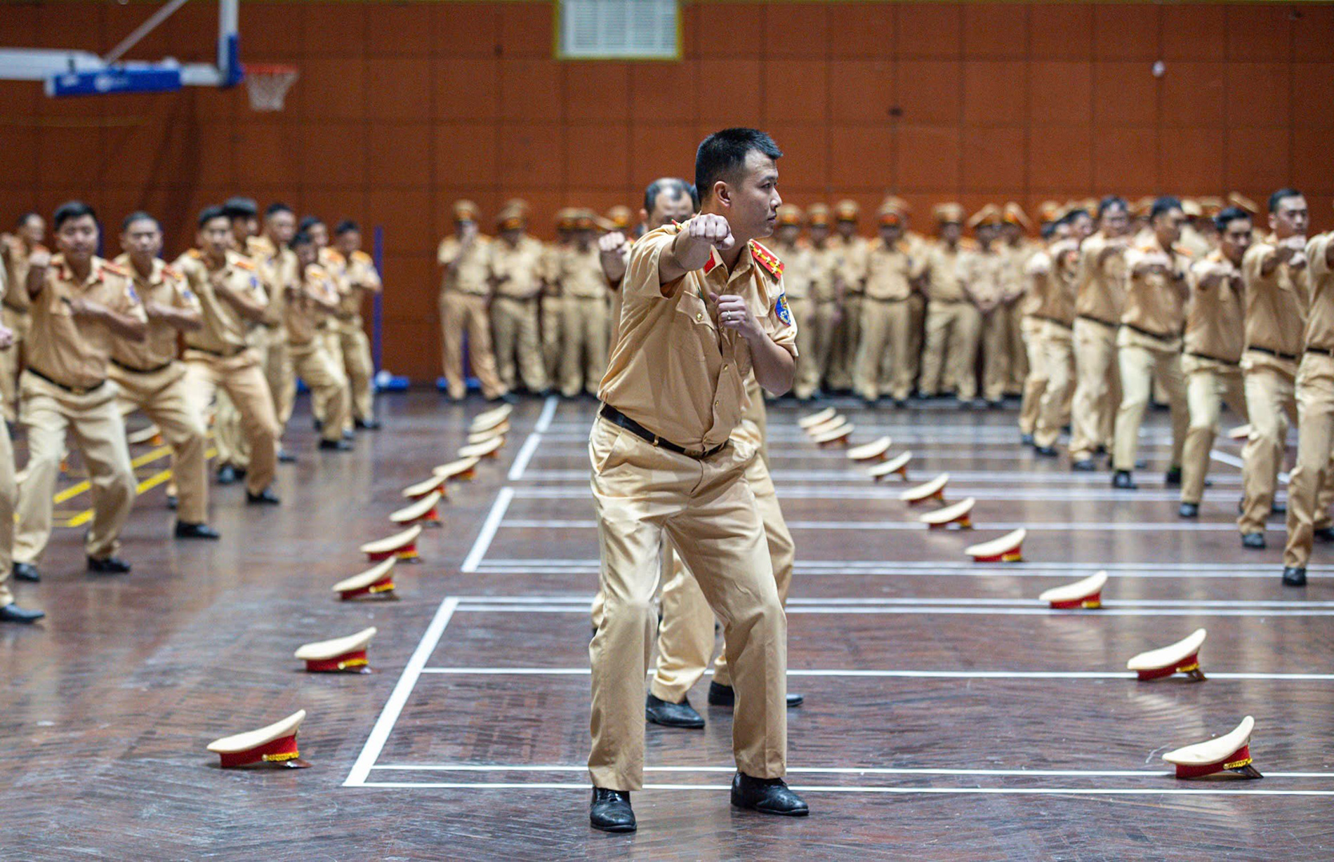 Dự buổi kiểm tra có Thượng tá Nguyễn Chí Công, Phó trưởng Phòng CSGT Công an TP Hà Nội; Trung tá Hoàng Tất Đạt, Đội trưởng Đội Điều lệnh, quân sự, võ thuật; Trung tá Nguyễn Tiến Hưng, cán bộ Phòng Công tác chính trị cùng chỉ huy, cán bộ, chiến sĩ các đội nghiệp vụ thuộc Phòng CSGT.