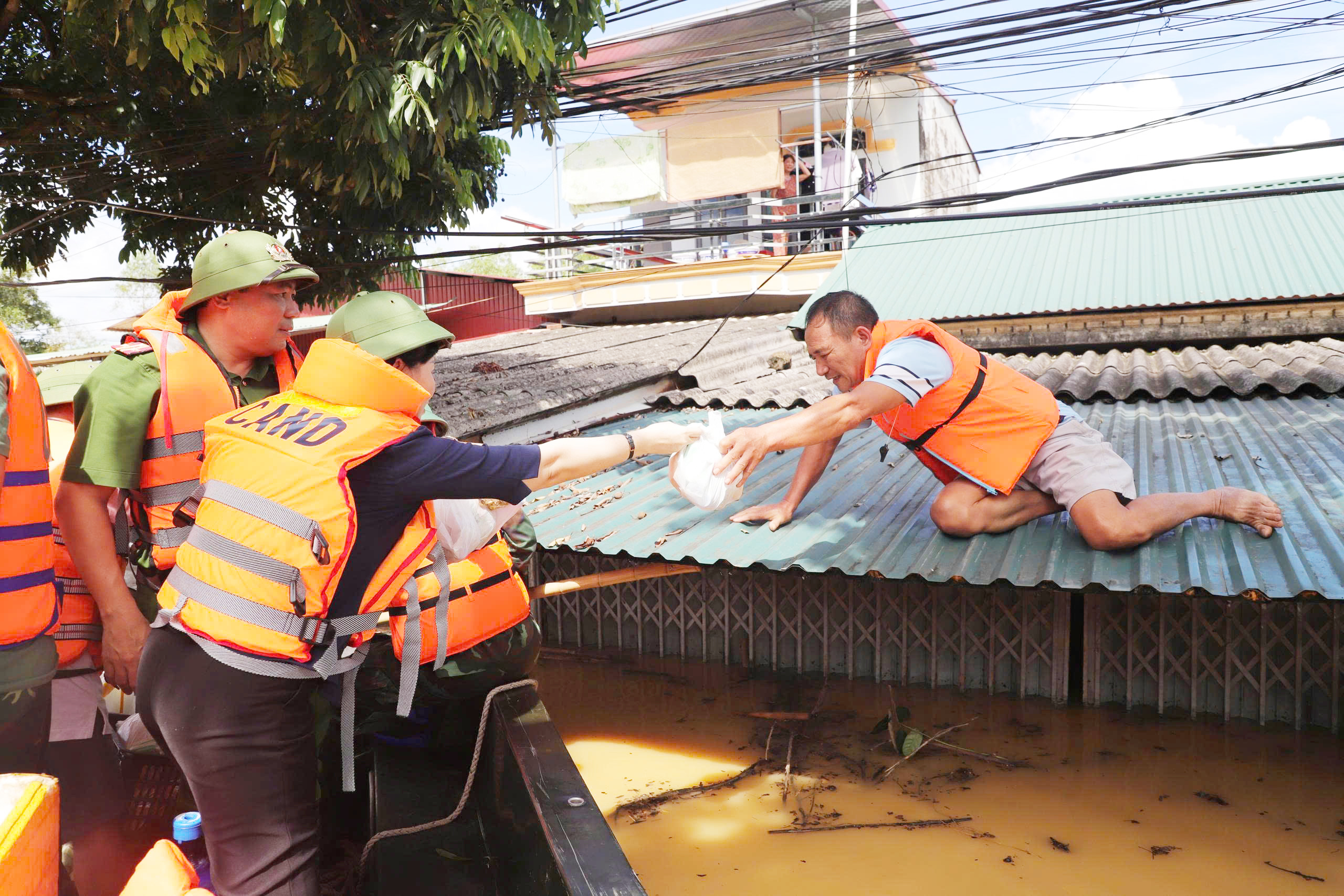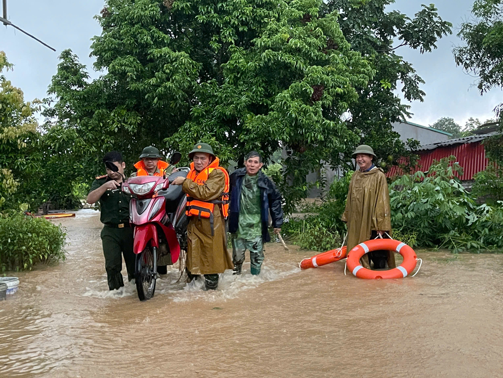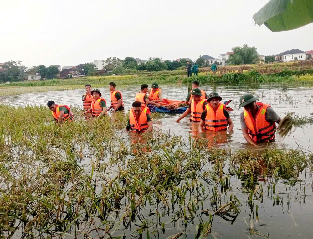 Trong những ngày cao điểm mưa lũ, nhiều xã, phường bị ngập sâu, lực lượng quân đội, công an trở thành "điểm tựa" vững chắc của Nhân dân. Từng tổ công tác bám sát địa bàn, phối hợp chặt chẽ với các đoàn thể địa phương và lực lượng khác tổ chức di dời người dân, vận chuyển nhu yếu phẩm, hướng dẫn người, phương tiện tránh qua lại vùng nguy hiểm.