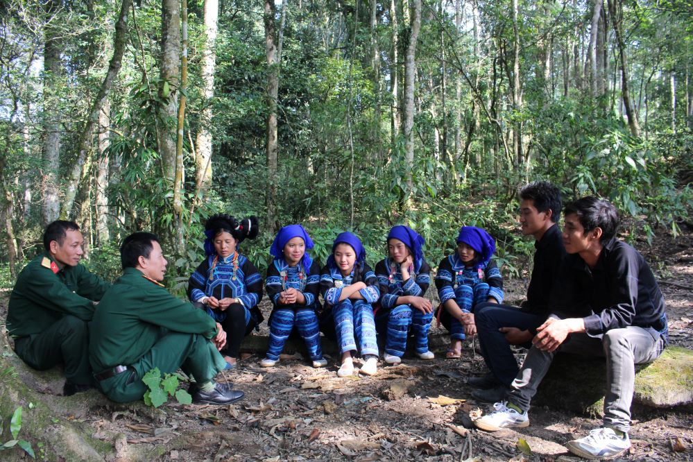 Bộ đội Đoàn Kinh tế - Quốc phòng 345 (Quân khu 2) tuyên truyền, vận động đồng bào các dân tộc xã Y Tý, tỉnh Lào Cai bảo vệ, chăm sóc rừng đầu nguồn. Ảnh: HỒNG SÁNG
