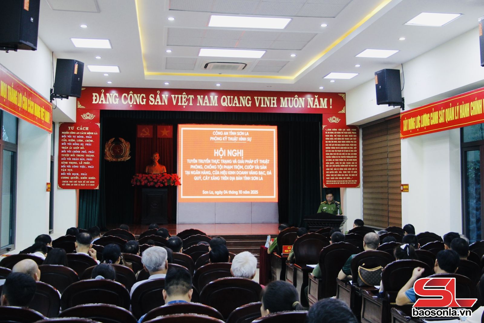 Tham dự hội nghị có gần 70 đại biểu đại diện Ngân hàng Nhà nước, các ngân hàng thương mại, quỹ tín dụng, công ty xăng dầu, cơ sở kinh doanh vàng bạc, đá quý trên địa bàn tỉnh. Các đại biểu đã được xem video clip phản ánh một số vụ án điển hình trộm, cướp tài sản xảy ra trên cả nước, qua đó rút ra nhiều bài học kinh nghiệm trong công tác phòng ngừa. Phòng Kỹ thuật hình sự tuyên truyền, giới thiệu những giải pháp kỹ thuật nhằm nâng cao hiệu quả phòng, chống tội phạm, bảo vệ tài sản tại ngân hàng, tổ chức tín dụng, điểm giao dịch, ATM, cơ sở kinh doanh vàng bạc, đá quý, cây xăng. Đồng thời, đại diện Viettel Sơn La cũng trình bày các thiết bị, giải pháp công nghệ trong giám sát, cảnh báo an ninh toàn diện.