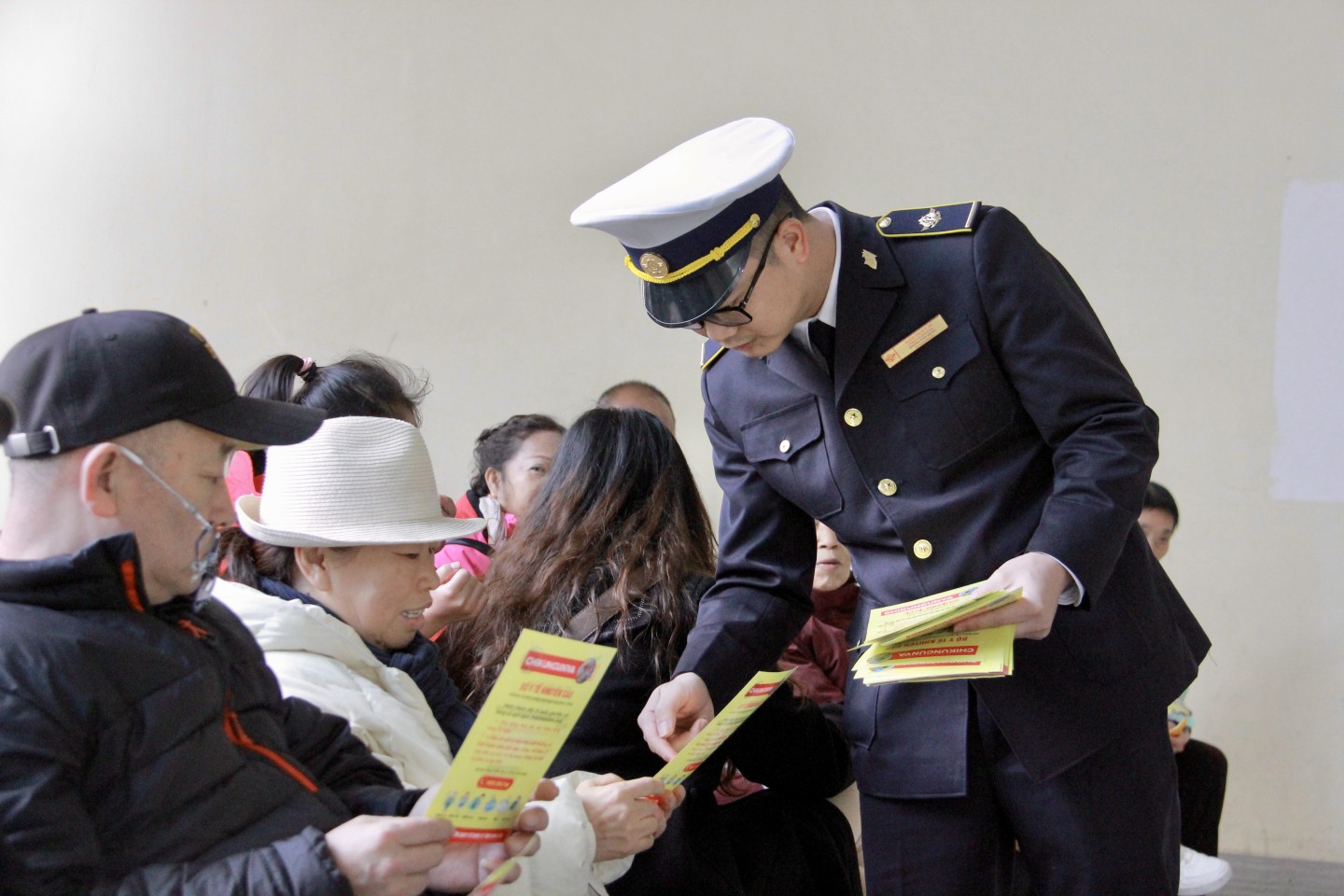 Cán bộ Trung tâm Kiểm dịch y tế quốc tế tỉnh Lạng Sơn tuyên truyền phòng, chống dịch bệnh cho khách nhập cảnh tại Cửa khẩu quốc tế Hữu Nghị