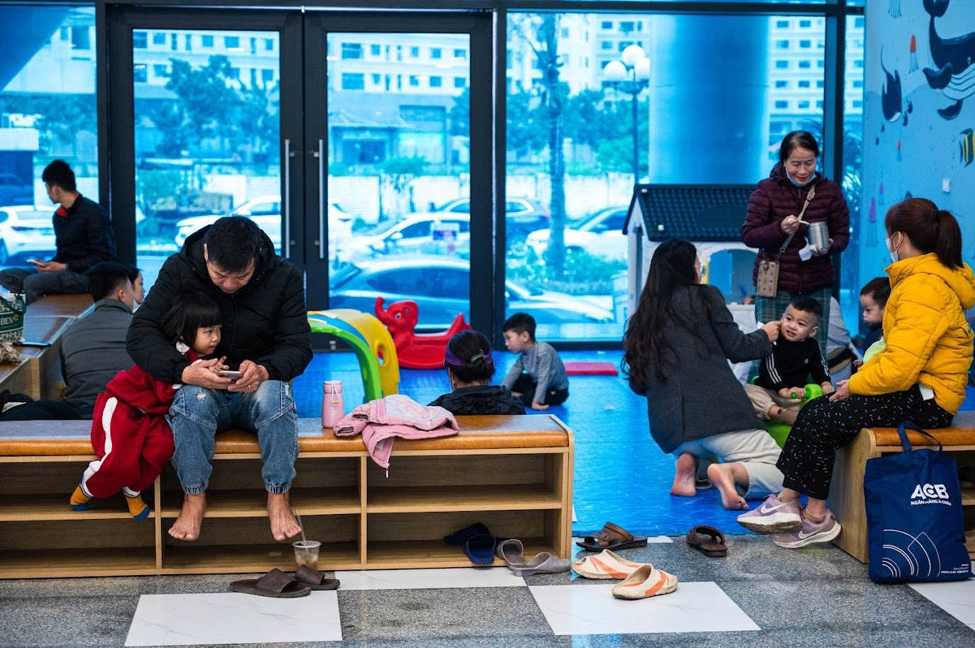 Thời tiết Hà Nội chuyển mùa, có ngày nồm ẩm, ngày lại mưa lạnh, khiến trẻ nhỏ trở thành "đối tượng dễ tổn thương" trước các bệnh đường hô hấp. Tại Bệnh viện Nhi Hà Nội, số lượng bệnh nhi đến khám, nhập viện vì cúm mùa và các bệnh hô hấp khác tăng vọt so với tháng trước.