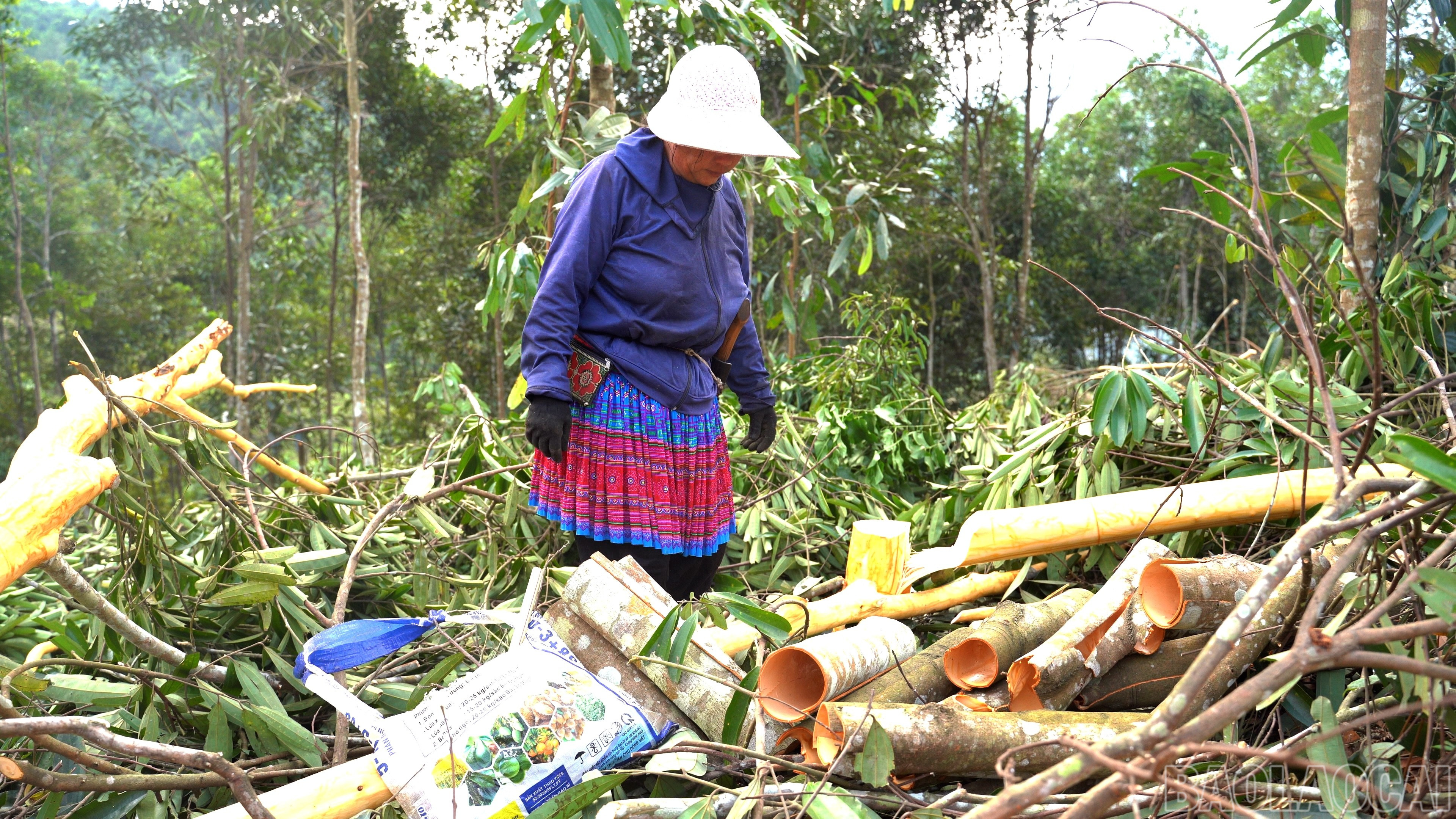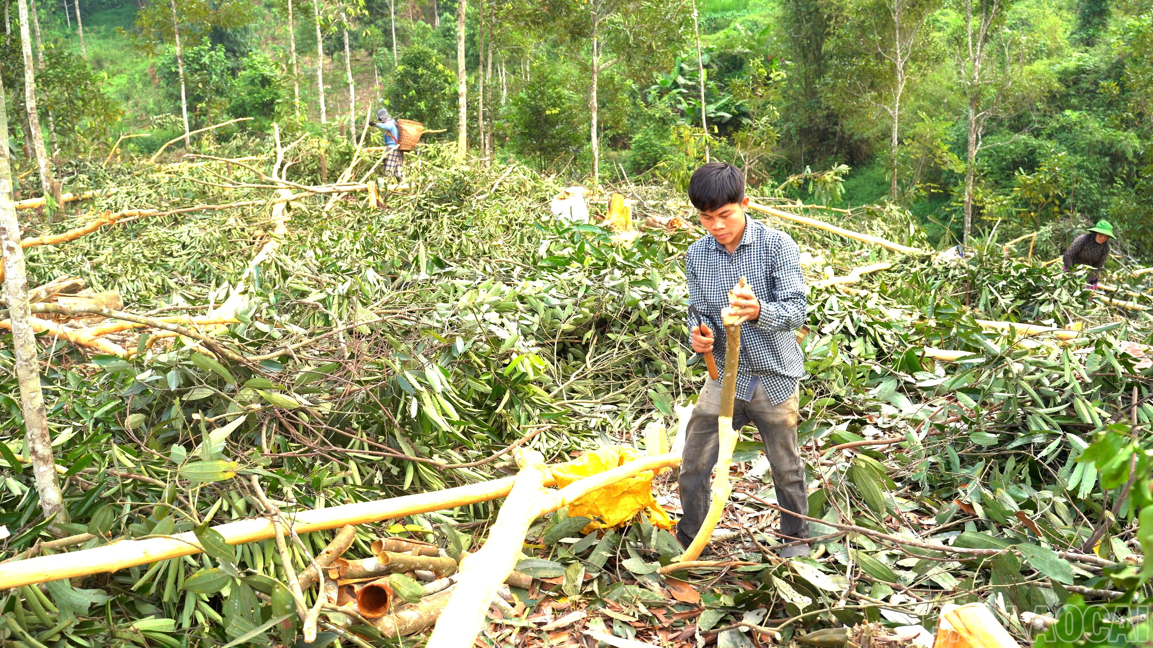 Người dân xã Phong Dụ Thượng khai thác quế theo phương thức thủ công, bảo đảm chất lượng vỏ.