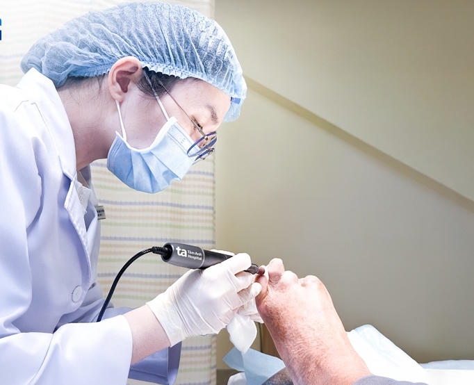 Chuyên gia dẫn chứng, trường hợp bà Tính, 68 tuổi, ở Tây Ninh bị tiểu đường 16 năm, nhập Bệnh viện Đa khoa Tâm Anh trong tình trạng hoại tử bàn chân phải, các ngón chân tím sậm dần chuyển sang màu đen, nhiễm trùng lan lên cổ chân, sốt cao, chỉ số đường huyết gấp 4 lần và HbA1c gần gấp đôi bình thường.