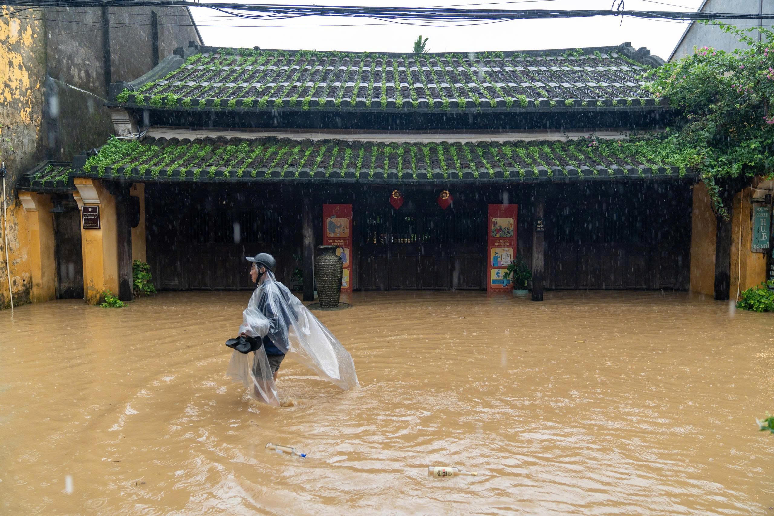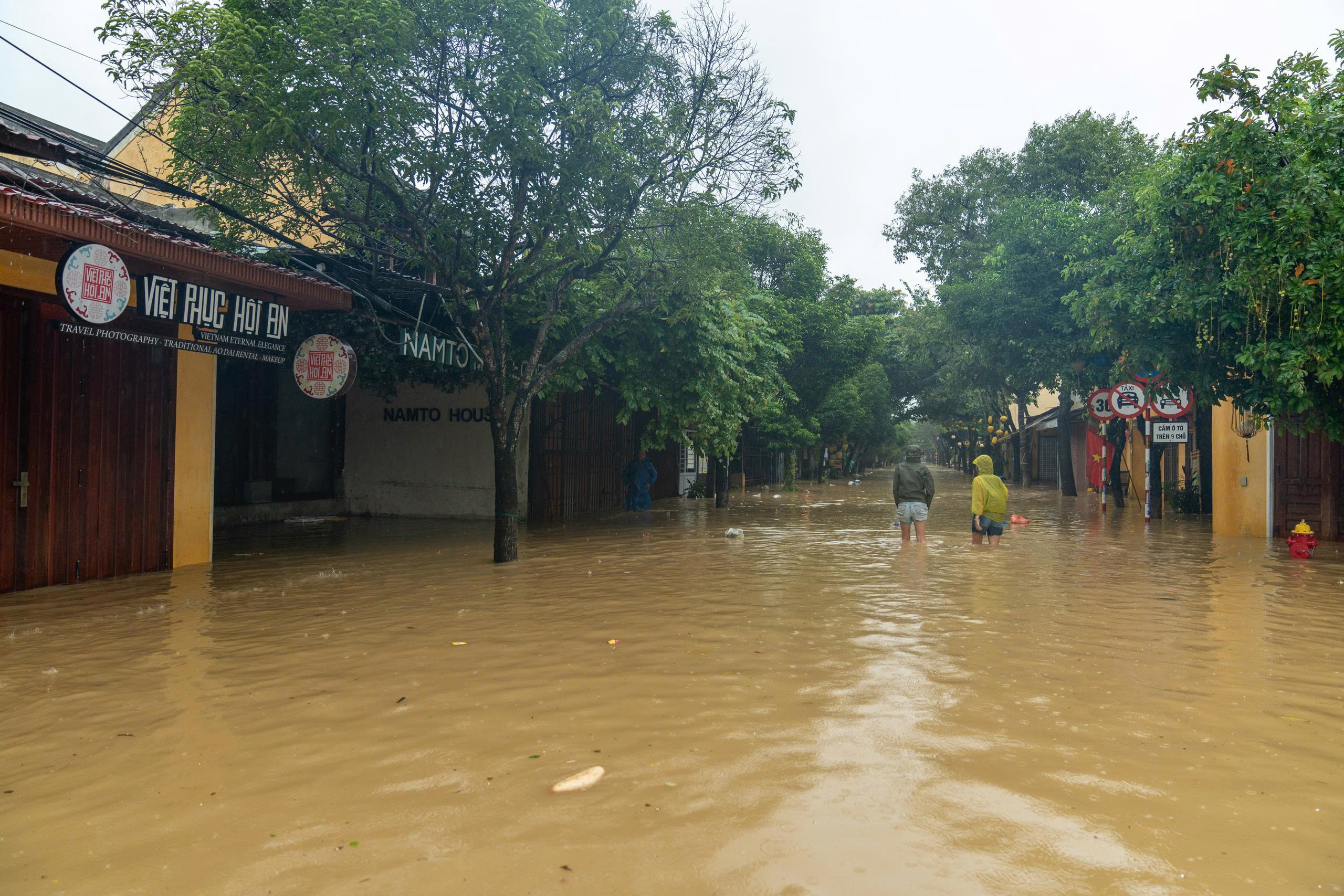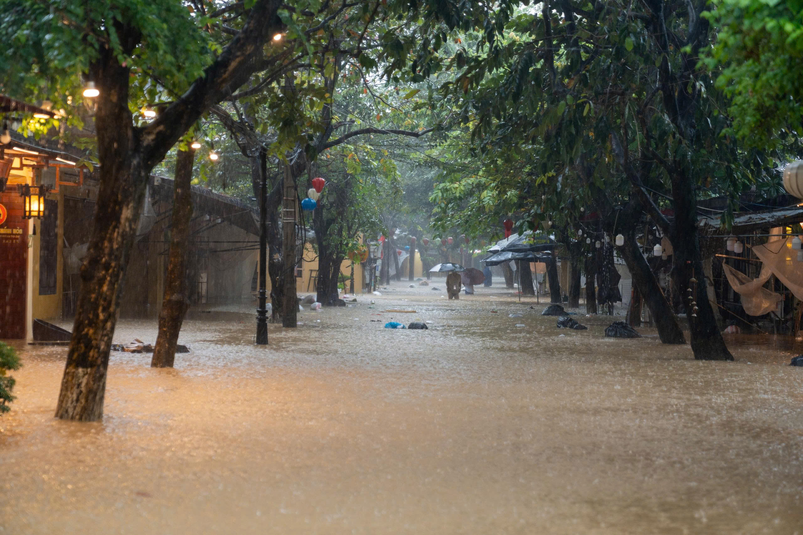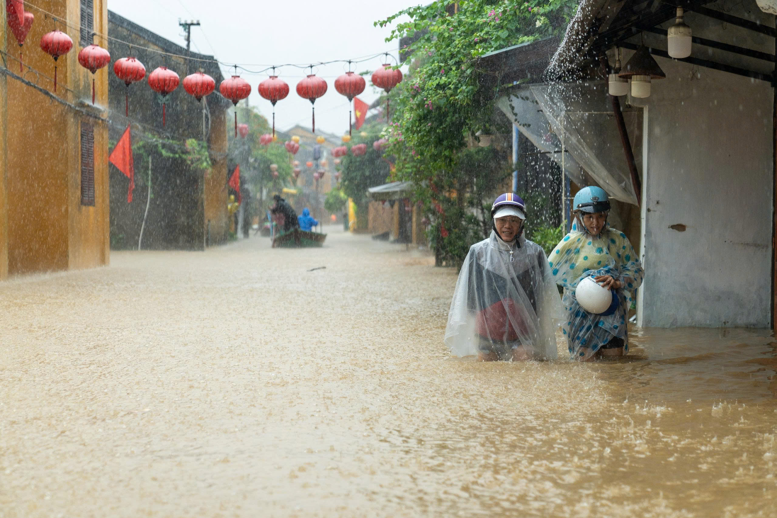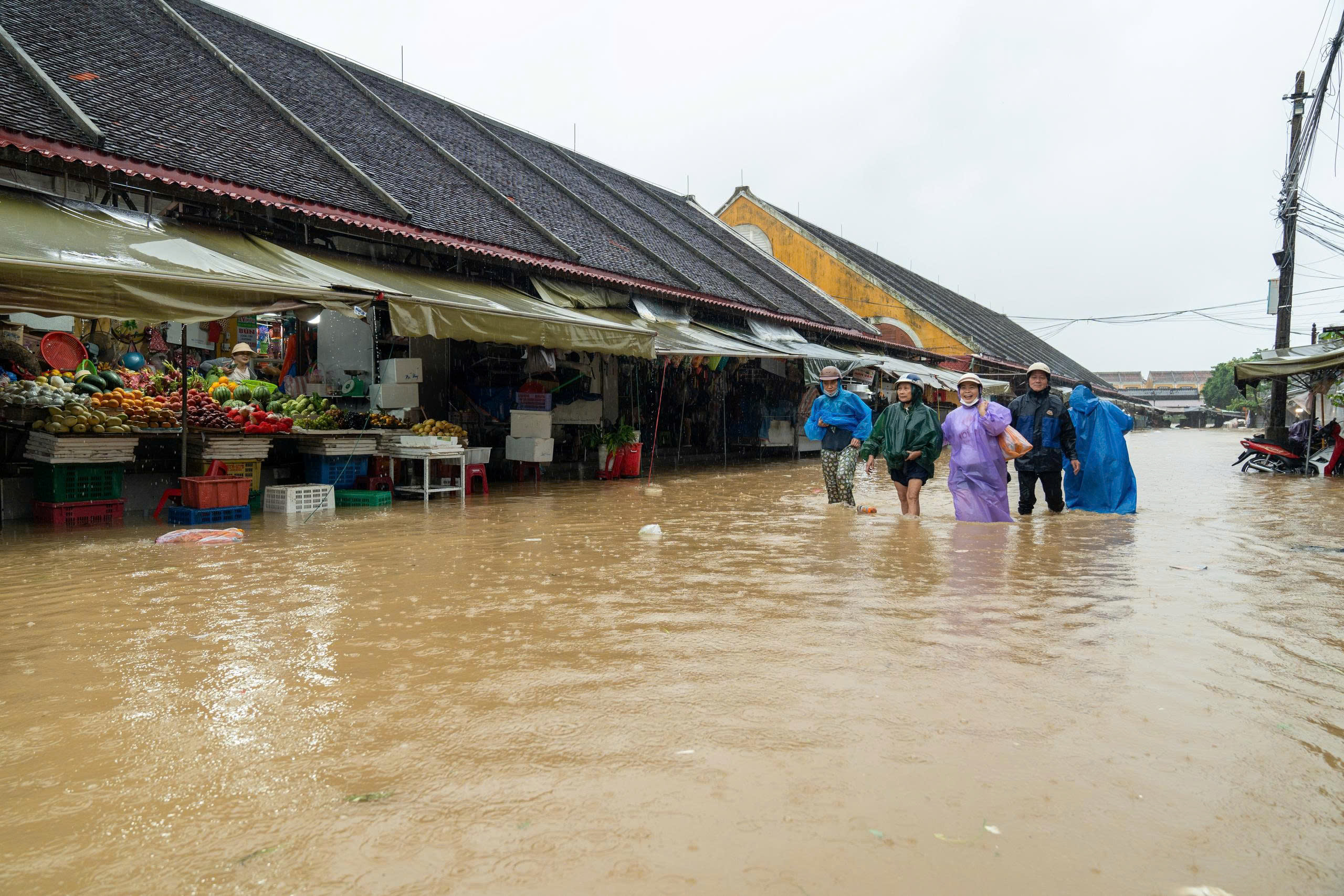 Ngày 27-10, do mưa lớn, thủy điện từ thượng nguồn xả nước, kết hợp với triều cường lên, nhiều tuyến đường ở Khu phố cổ Hội An (phường Hội An, TP Đà Nẵng) bị ngập nặng.