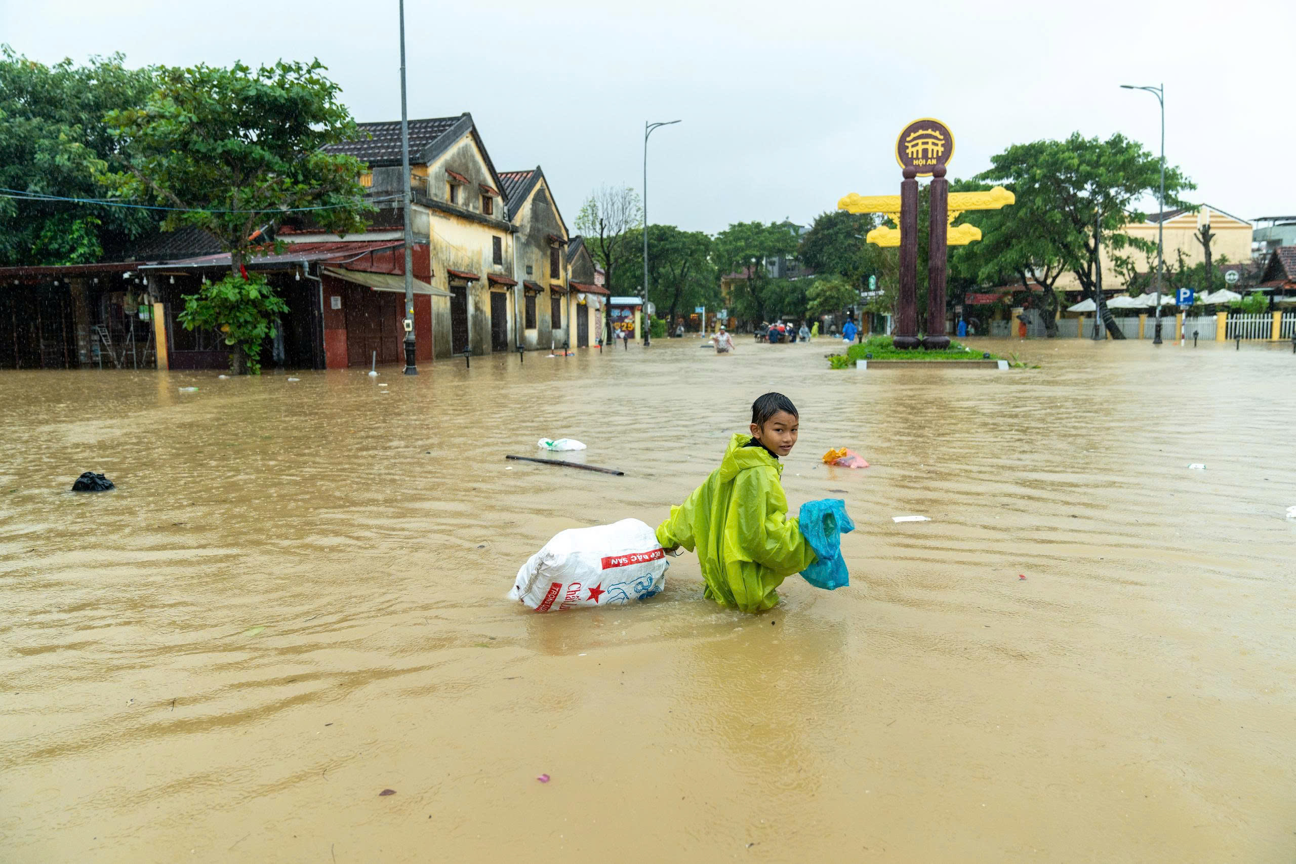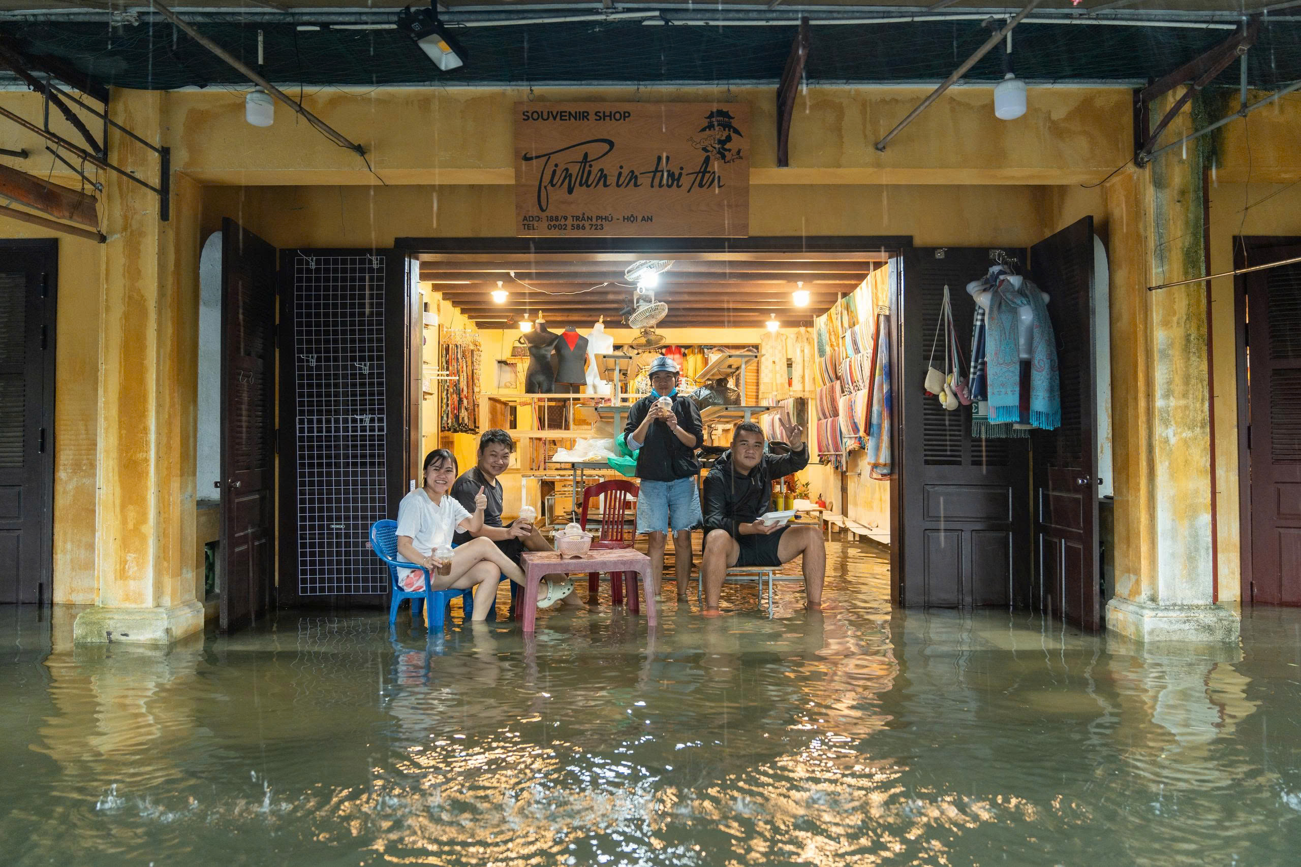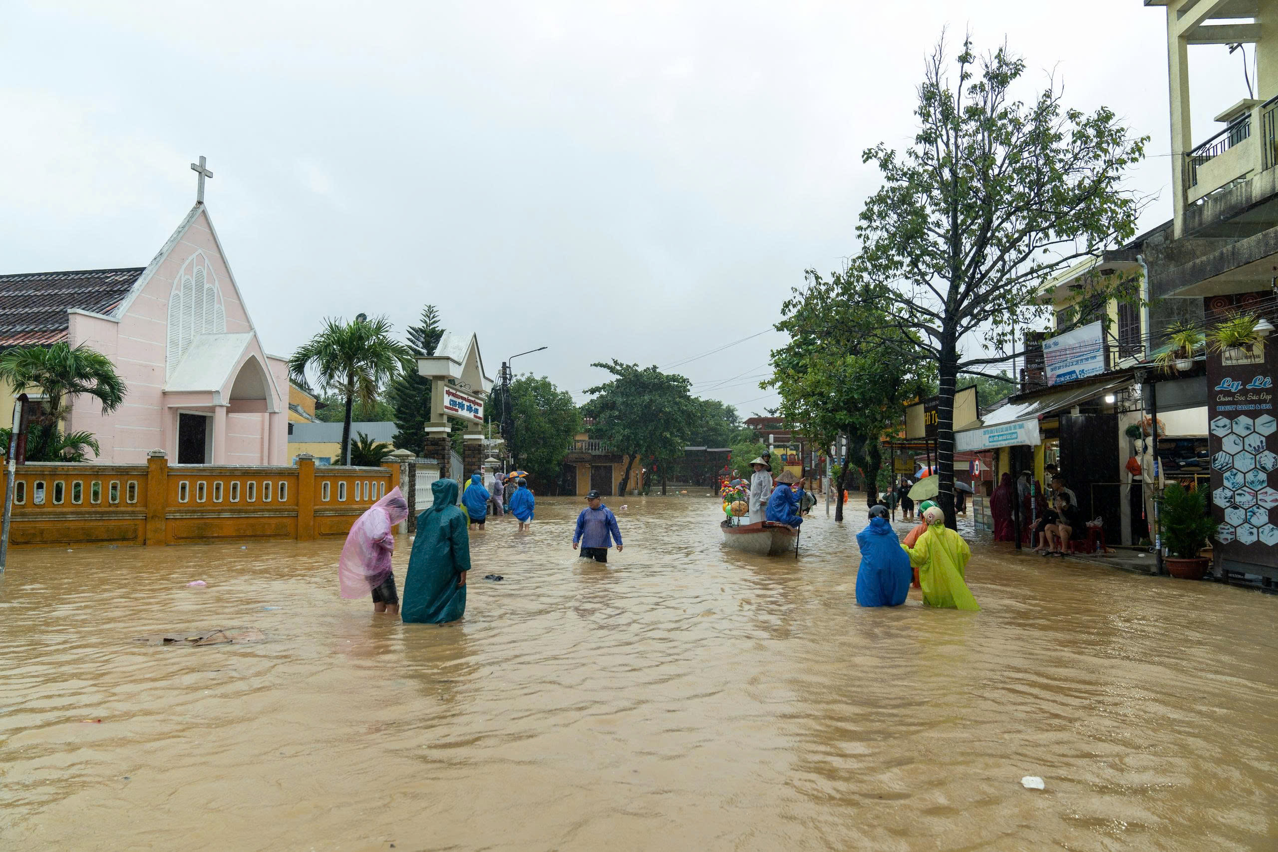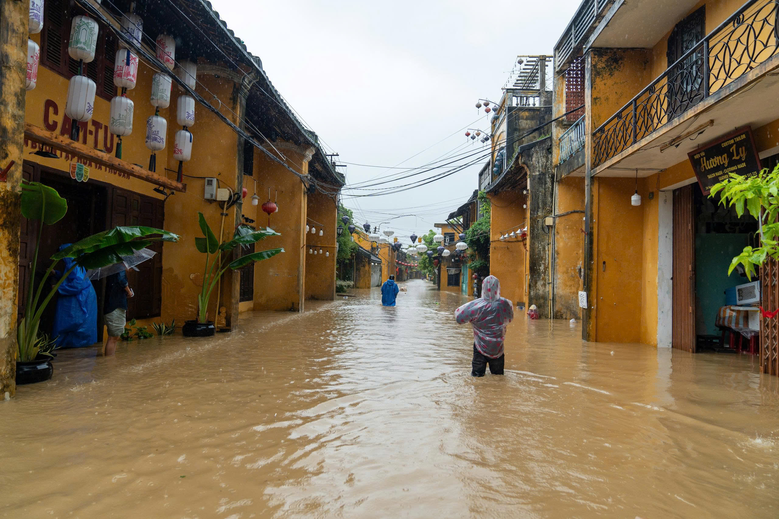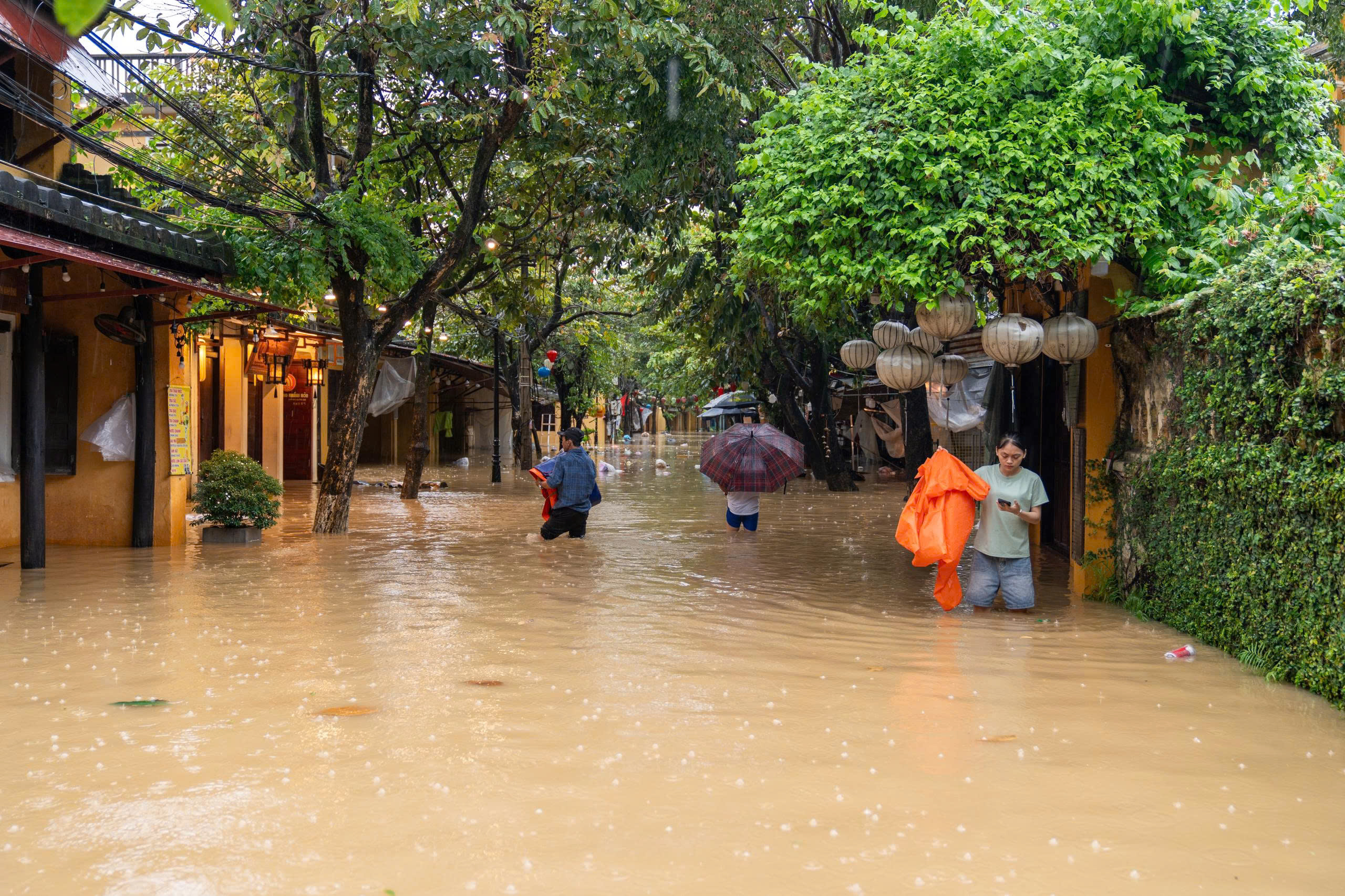 Ngày 27-10, do mưa lớn, thủy điện từ thượng nguồn xả nước, kết hợp với triều cường lên, nhiều tuyến đường ở Khu phố cổ Hội An (phường Hội An, TP Đà Nẵng) bị ngập nặng.