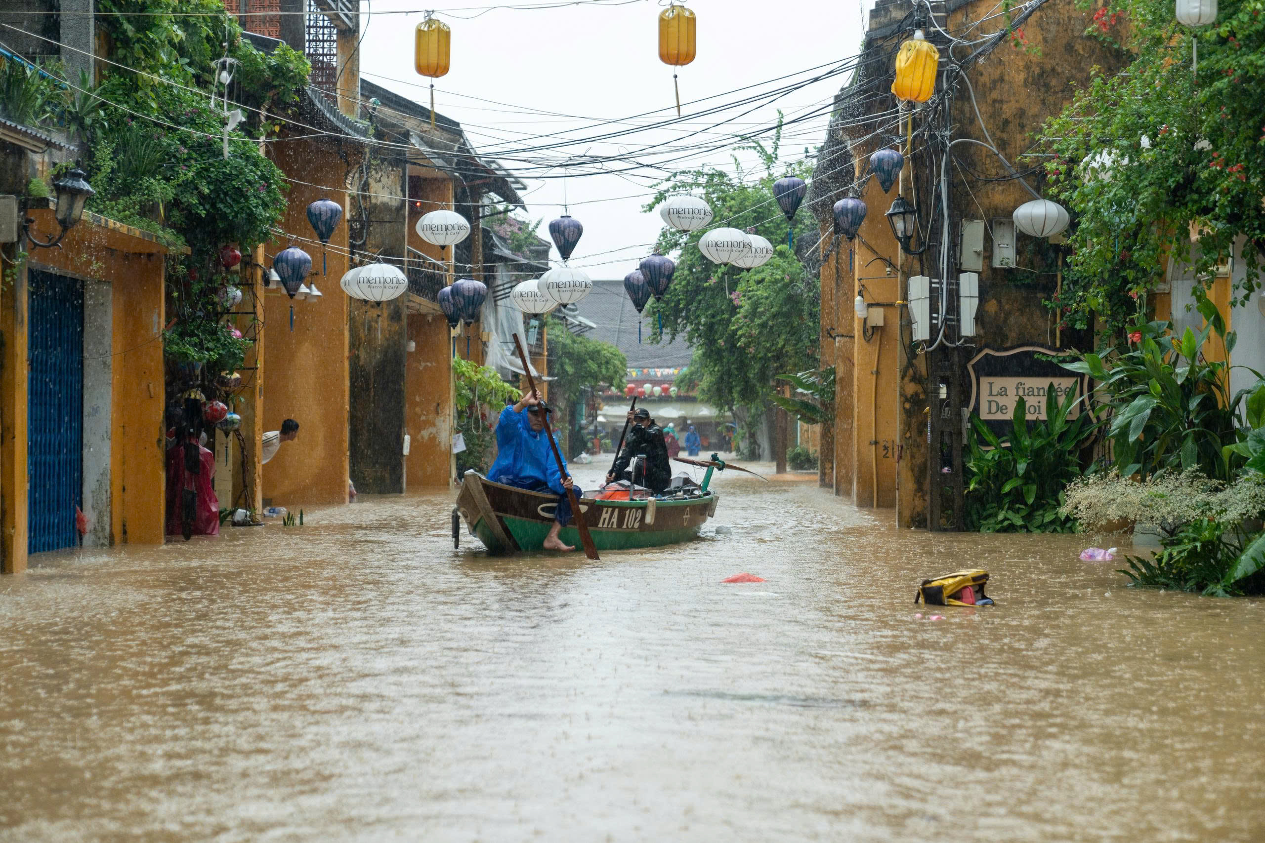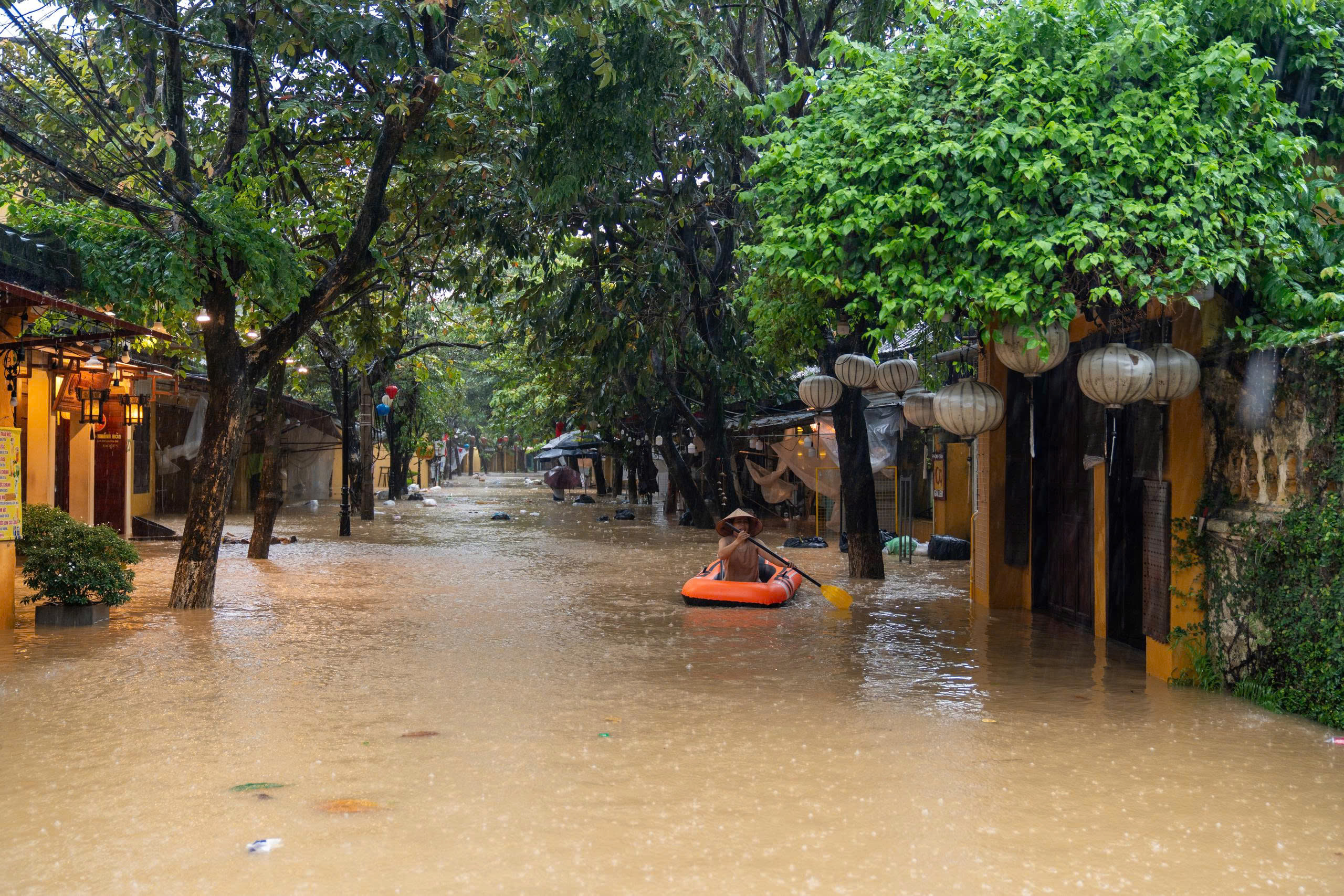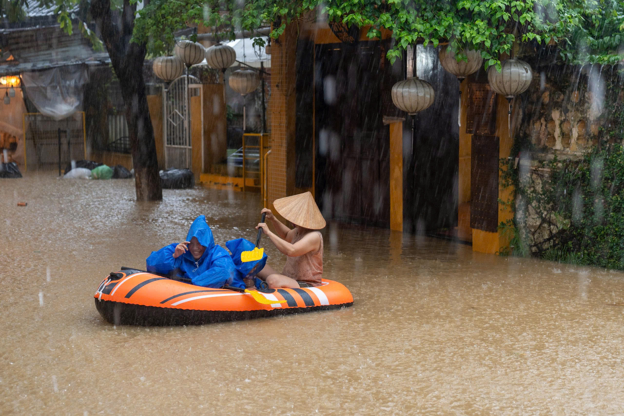 Nhiều tuyến đường ngập nặng, người dân đi lại bằng thuyền trong phố cổ. Ảnh: VÕ VĂN PHI LONG