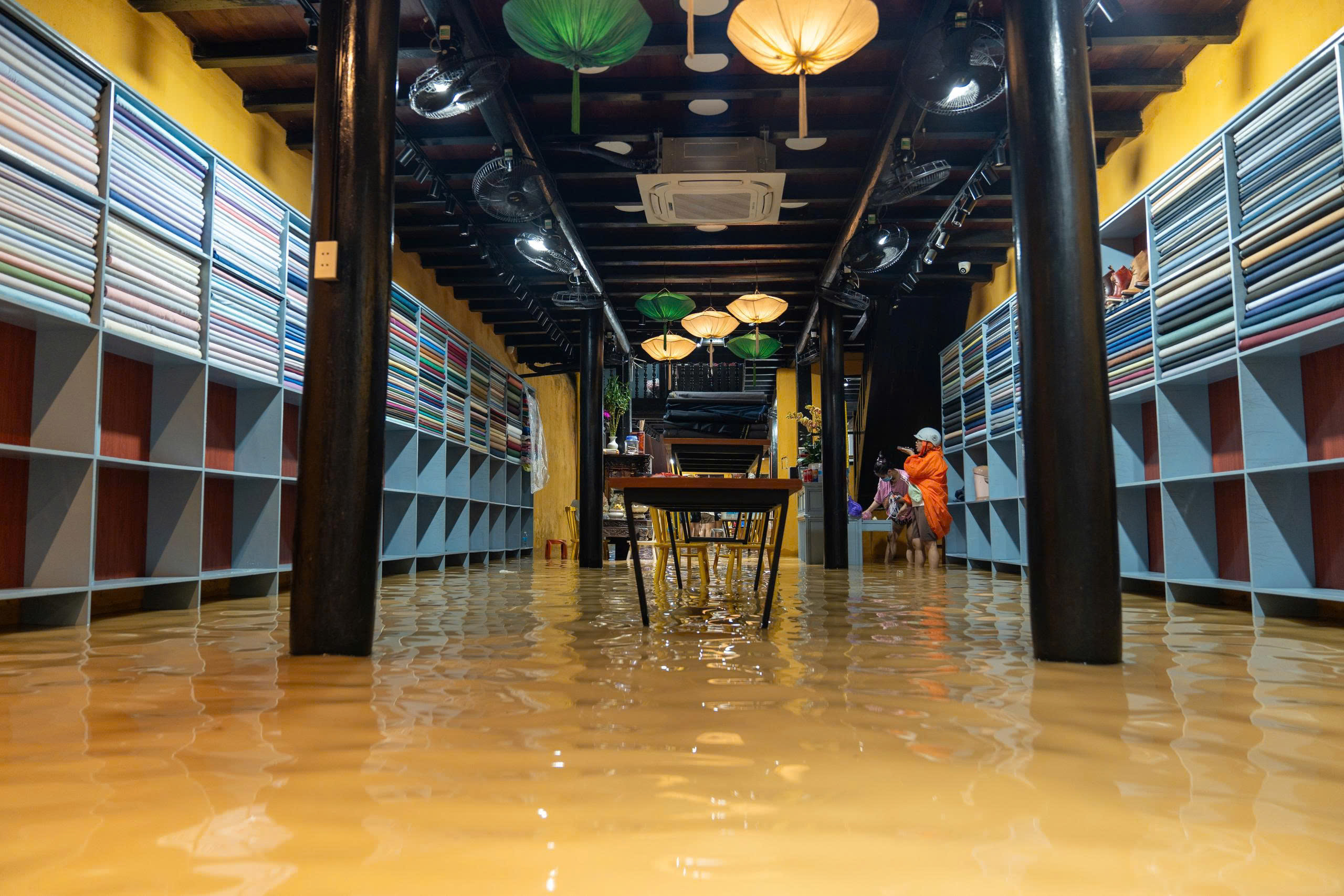 Phố cổ Hội An trầm mặc với màu nước vàng đục. Ảnh: VÕ VĂN PHI LONG