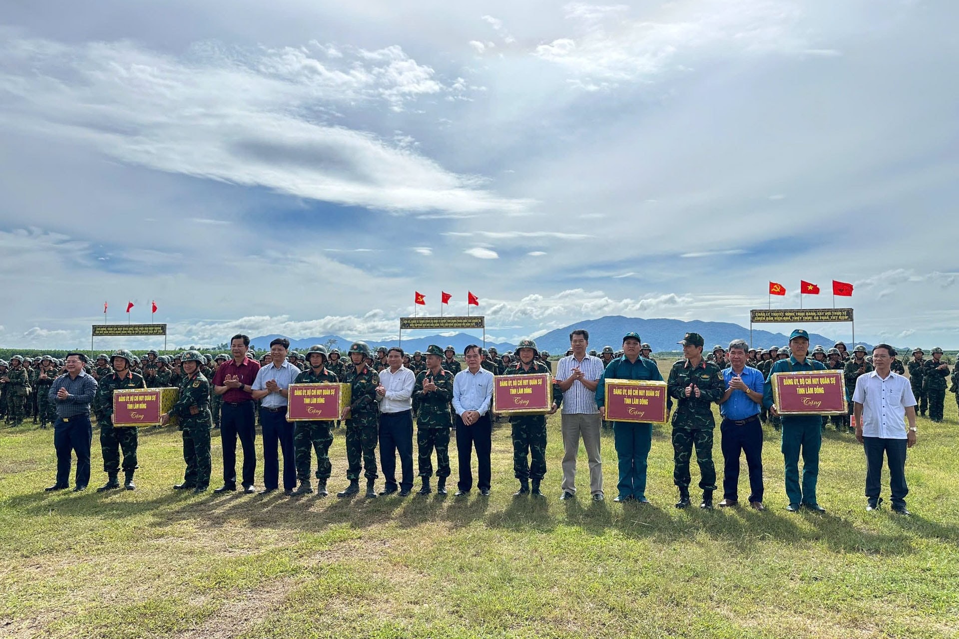 Lãnh đạo các đơn vị, địa phương tặng quà, động viên lực lượng tham gia diễn tập