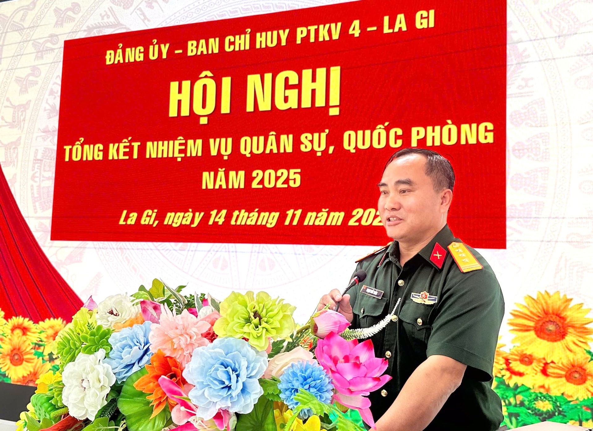 Thượng tá Phạm Viết Toản, Chỉ huy trưởng Ban Chỉ huy PTKV4 - La Gi phát biểu chỉ đạo tại Hội nghị