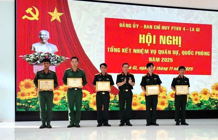 Tại Hội nghị, Ban Chỉ huy PTKV4 - La Gi đã khen thưởng các tập thể, cá nhân có thành tích xuất sắc trong thực hiện nhiệm vụ năm 2025. Đồng thời, xác định phương hướng, nhiệm vụ năm 2026. Trọng tâm là phát huy đoàn kết, duy trì nghiêm kỷ luật, làm tốt công tác tuyển quân, xây dựng đơn vị vững mạnh toàn diện nhằm đáp ứng yêu cầu nhiệm vụ trong giai đoạn mới.
