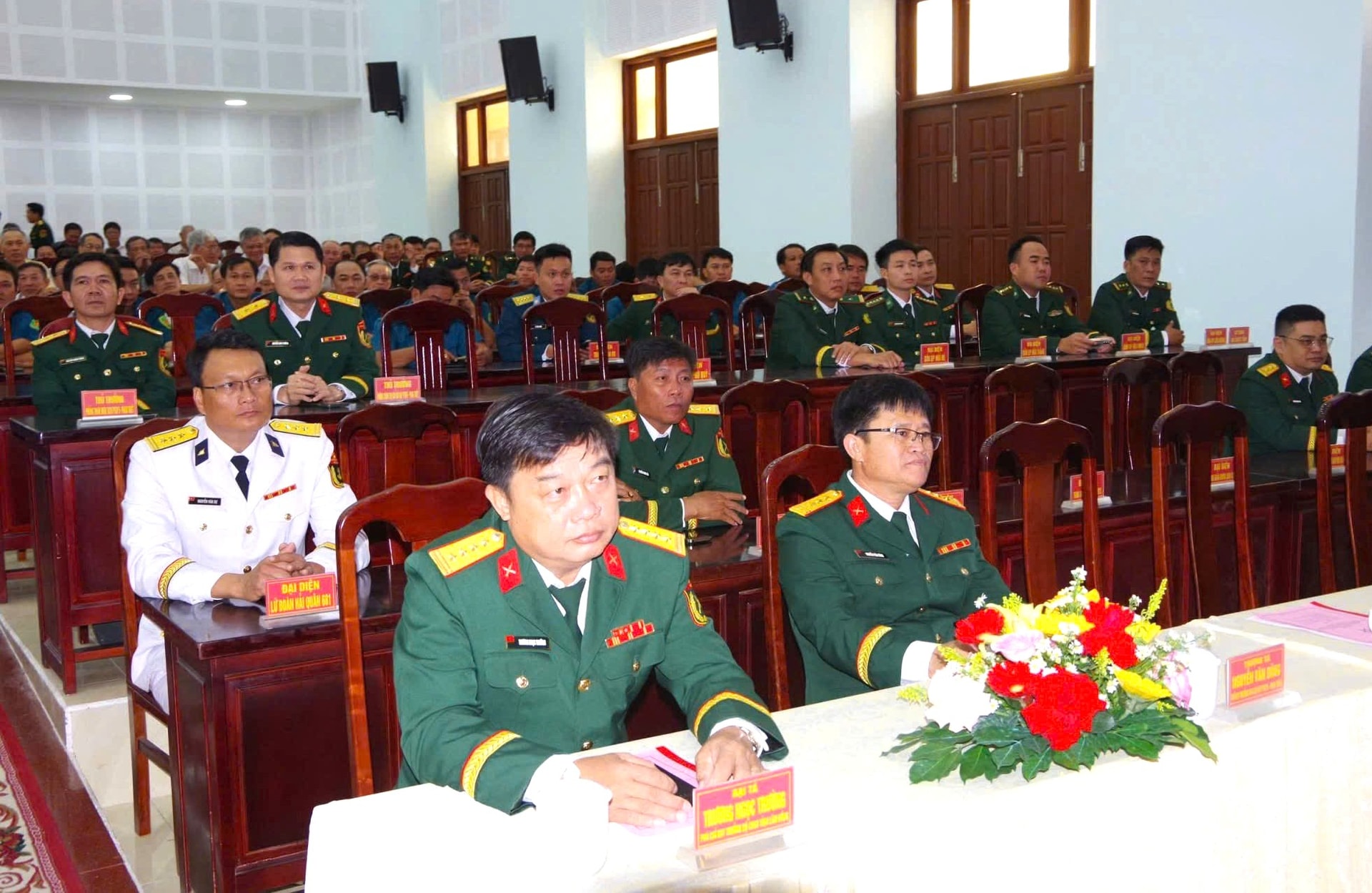 Đại tá Trương Ngọc Trường, Phó Chỉ huy trưởng Bộ CHQS tỉnh, cùng cán bộ, chiến sĩ và các đại biểu dự gặp mặt