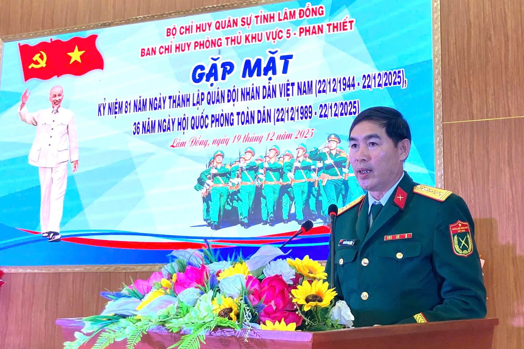 Phát biểu tại buổi gặp mặt, Đại tá Nguyễn Minh Chính, Chính ủy Ban Chỉ huy Phòng thủ Khu vực 5 - Phan Thiết nhấn mạnh: Trải qua 81 năm xây dựng, phát triển, chiến đấu và chiến thắng, dưới sự lãnh đạo của Đảng Cộng sản Việt Nam, sự đùm bọc của Nhân dân và sự ủng hộ của bạn bè quốc tế, Quân đội Nhân dân Việt Nam không ngừng lớn mạnh, kế thừa và phát huy truyền thống quân sự của dân tộc, hoàn thành xuất sắc mọi nhiệm vụ được giao.