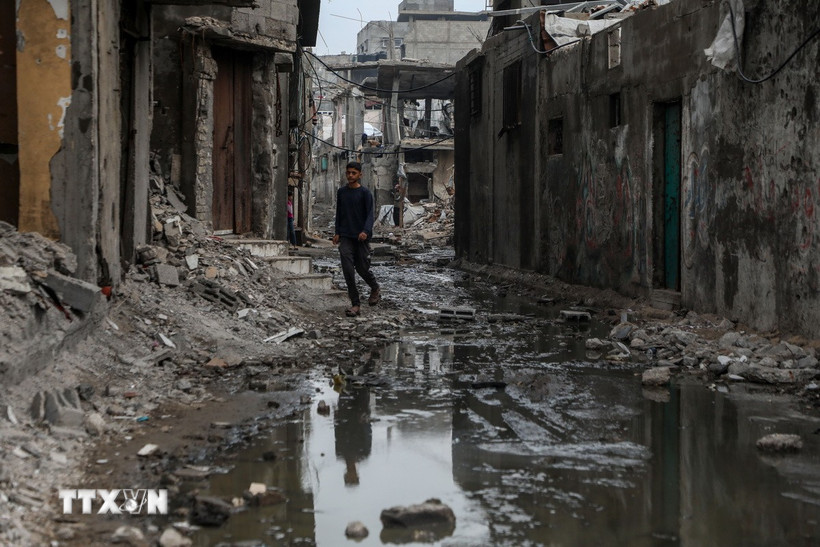 Cảnh tàn phá do xung đột tại Shati, Gaza. (Ảnh: THX/TTXVN)