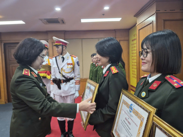 Các tập thể, cá nhân xuất sắc được Hội Phụ nữ Bộ Công an tặng Bằng khen.