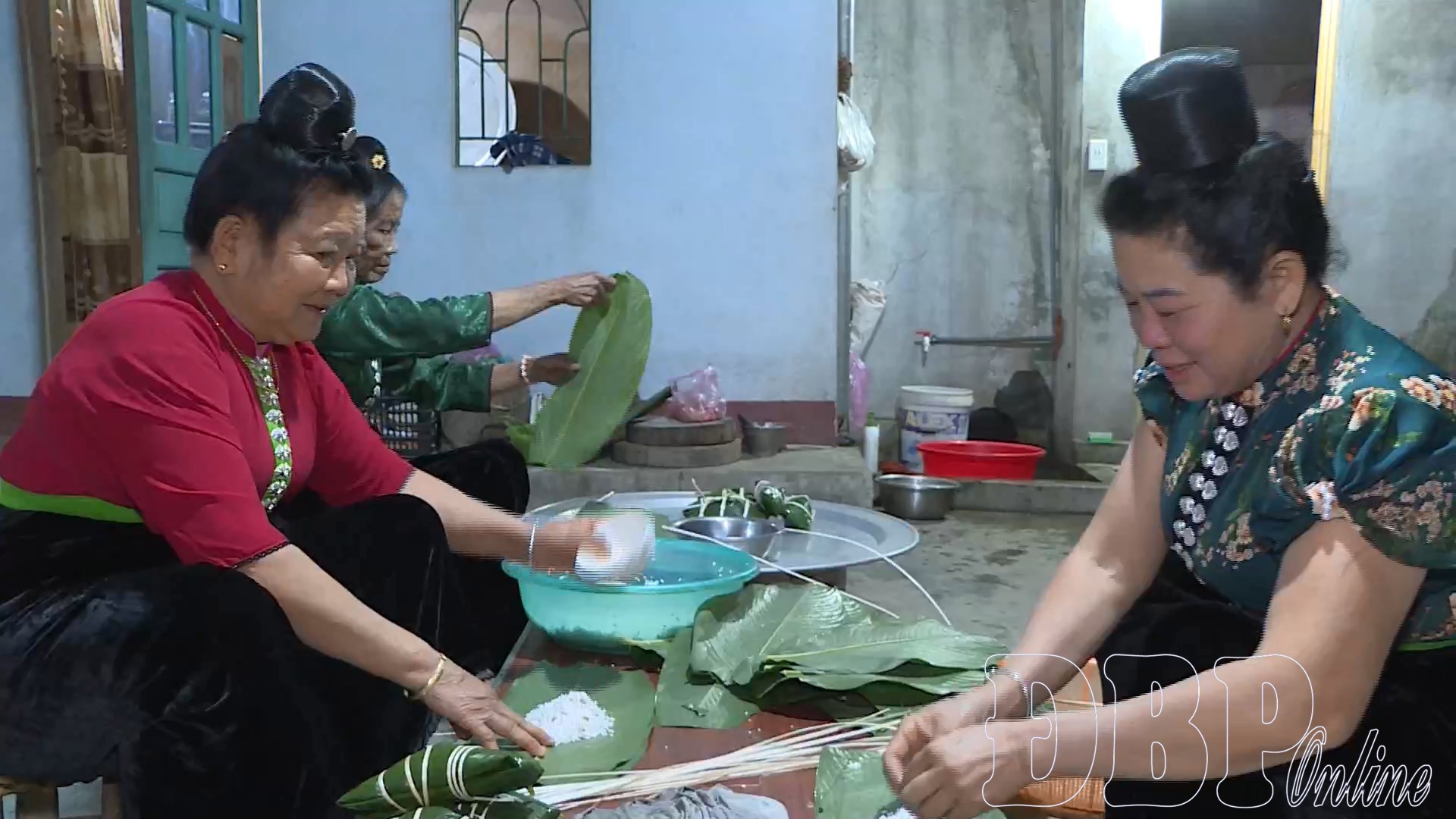 Bà con bản Phủ gói bánh chưng gù.