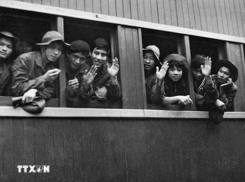 Phóng viên, điện báo viên, kỹ thuật viên Việt Nam Thông tấn xã khóa GP10 trên tàu vào chi viện cho chiến trường miền Nam. (Ảnh: TTXVN)