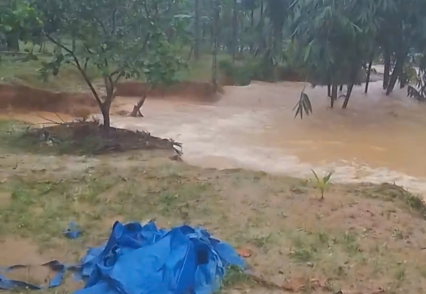 Toàn bộ phần vườn và một phần nền đất quanh nhà ông Báu bị sạt lở, cuốn trôi xuống sông, đe dọa trực tiếp đến tính mạng và tài sản của người dân trong khu vực.