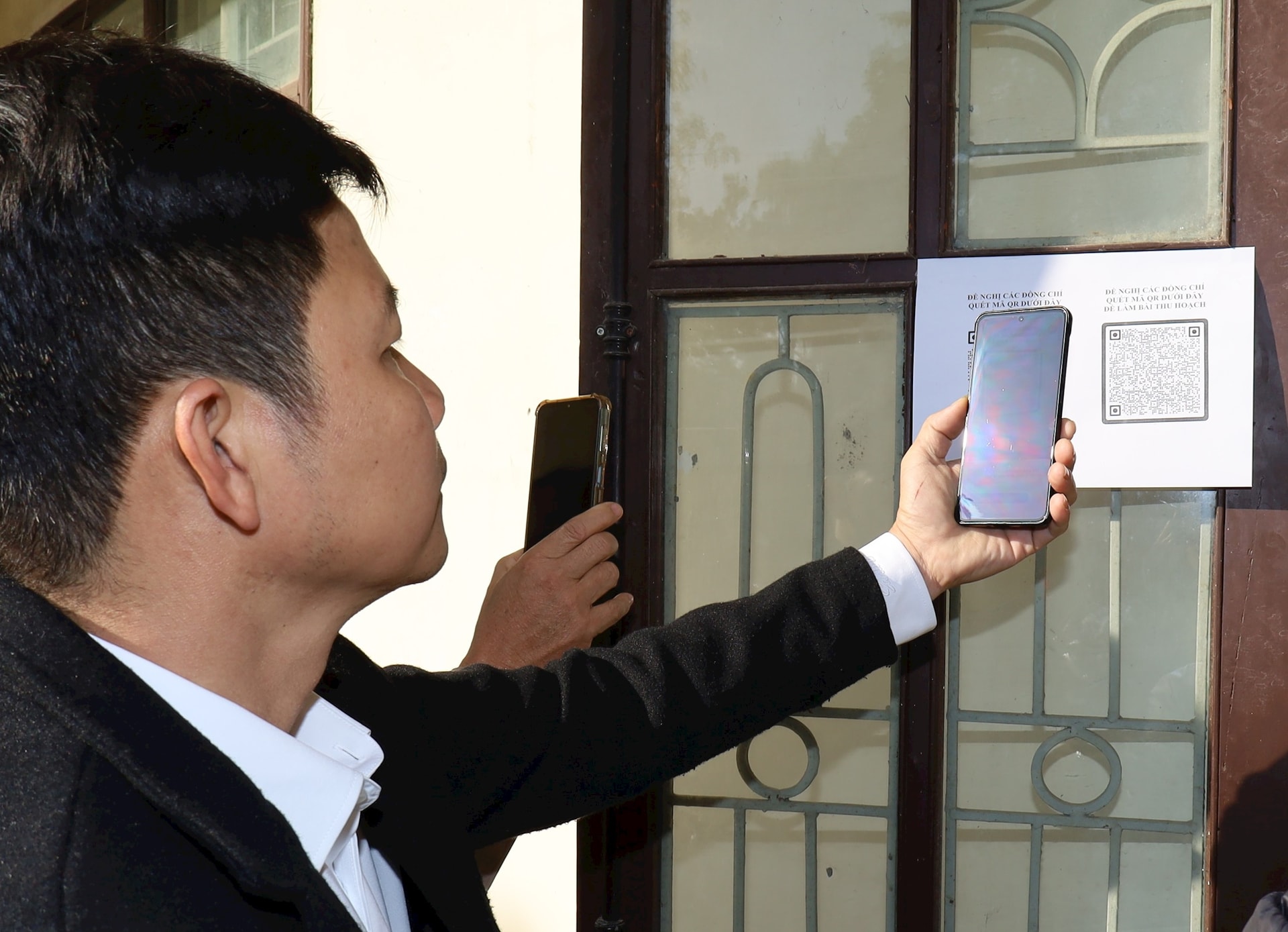 Đại biểu điểm danh, nhận tài liệu bằng mã QR. Ảnh: Kiều Lực
