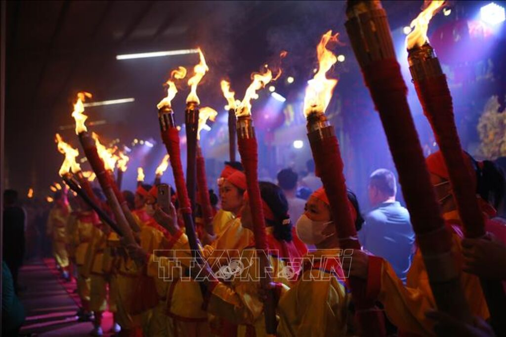 Lễ rước đuốc, một trong 3 nghi lễ độc đáo trong lễ hội Phủ Dầy. Ảnh tư liệu: Công Luật/TTXVN