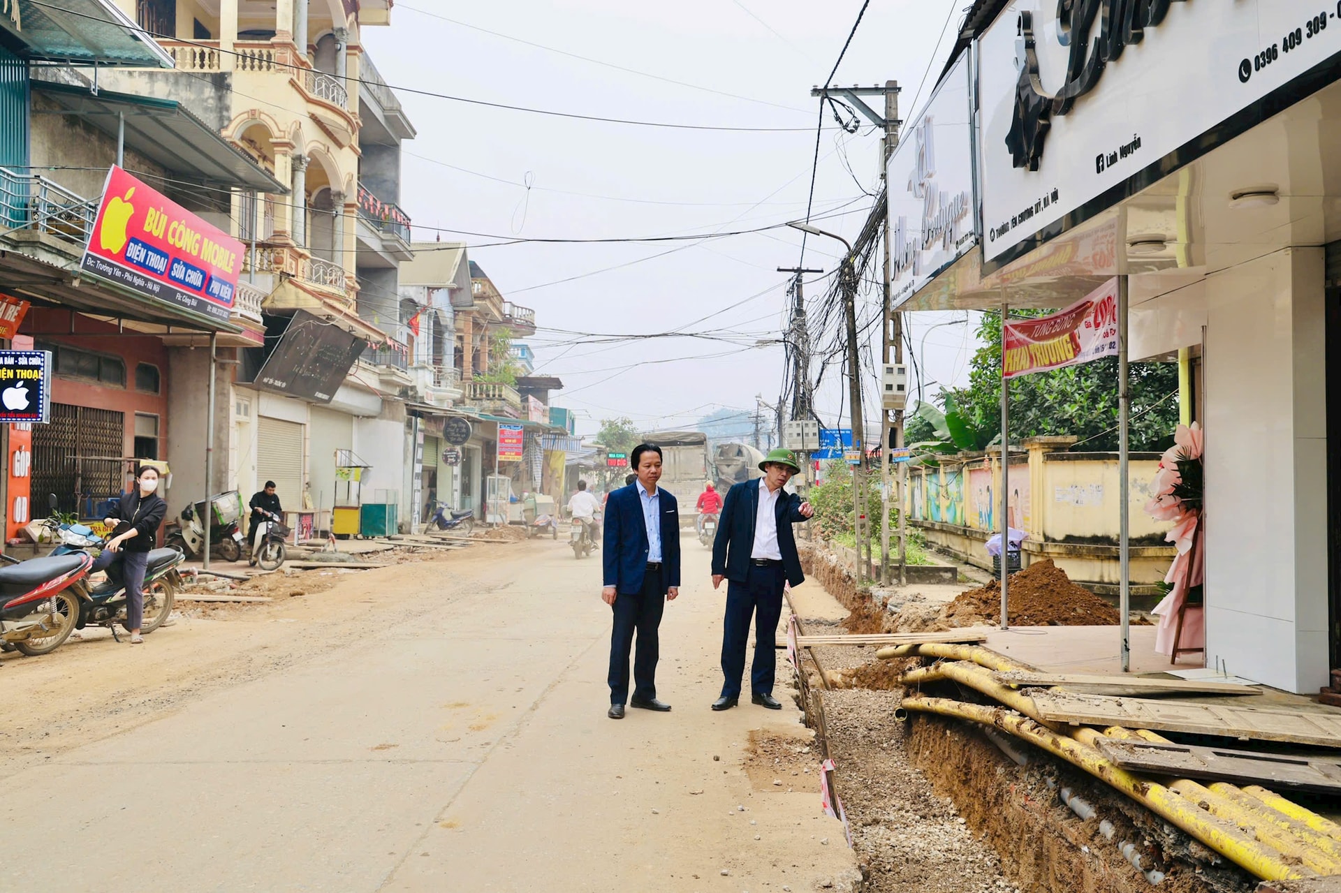 Bí thư Đảng ủy, Chủ tịch HĐND xã Phú Nghĩa Trịnh Tiến Tường kiểm tra rất kỹ nhiều hạng mục công trình. Ảnh: Kim Thoa