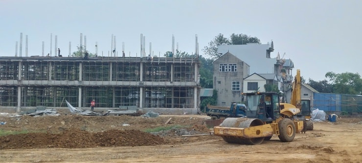 Công trình xây dựng Trường THCS Trường Yên tấp nập, nhộn nhịp ngay từ sáng sớm cuối tuần. Ảnh: Kim Thoa