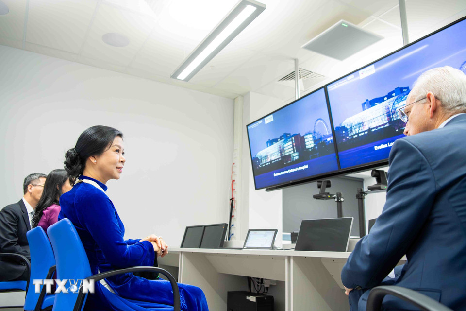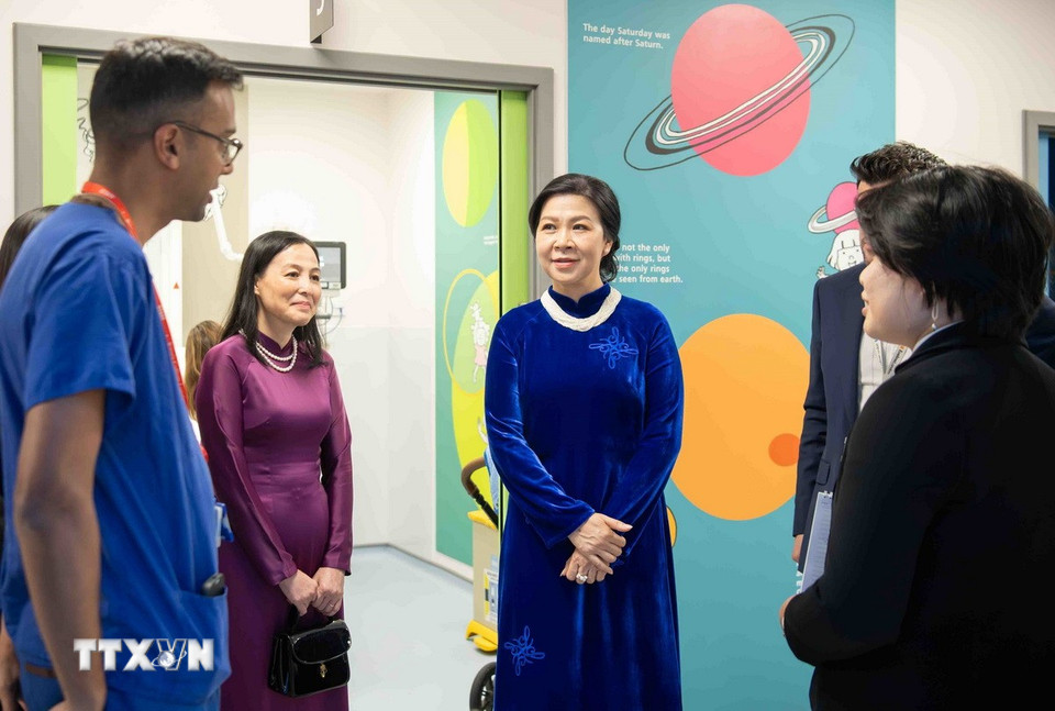 Bà Ngô Phương Ly, Phu nhân Tổng Bí thư Tô Lâm, thăm Bệnh viện Nhi Evelina London. (Ảnh: TTXVN phát)