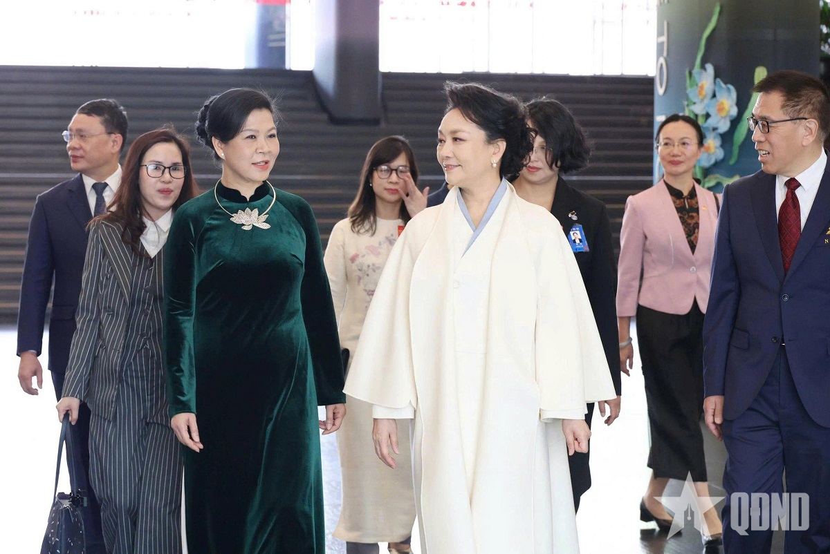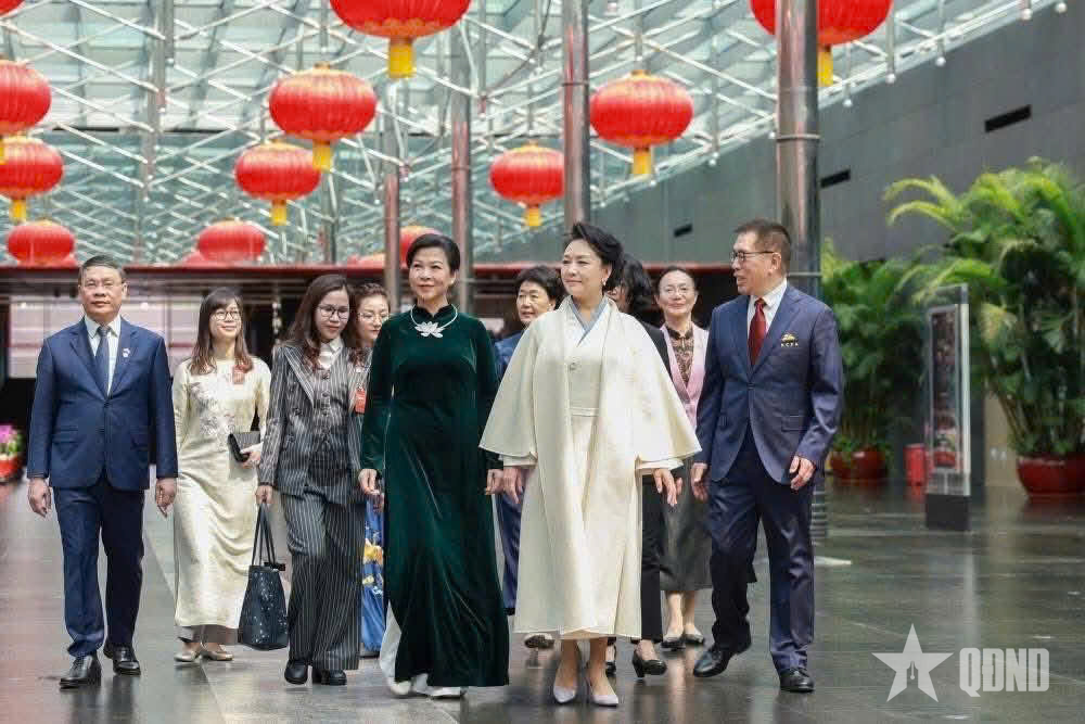 Phu nhân Tổng Bí thư, Chủ tịch Trung Quốc Tập Cận Bình - bà Bành Lệ Viên cùng phu nhân Tổng Bí thư, Chủ tịch nước Tô Lâm - bà Ngô Phương Ly.