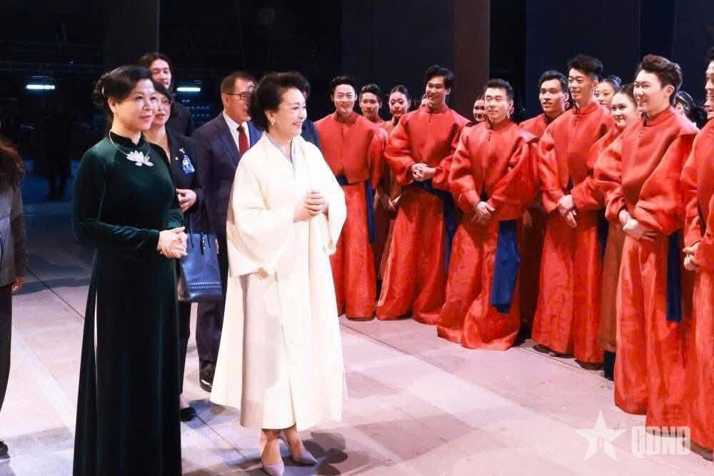 Nhắc lại vở vũ kịch "Khổng Tước" do nghệ sĩ Dương Lệ Bình của Trung Quốc biểu diễn vừa qua tại Hà Nội, phu nhân khuyến khích việc lưu diễn các loại hình nghệ thuật đỉnh cao của các nghệ sĩ nổi tiếng Trung Quốc tới Việt Nam, coi đây là hoạt động có ý nghĩa thiết thực trong việc mở rộng không gian tiếp cận nghệ thuật của công chúng yêu nghệ thuật Việt Nam, góp phần thúc đẩy giao lưu văn hóa, củng cố nền tảng dân ý giữa hai nước. Nếu chính trị và kinh tế là những trụ cột vững chắc cho quan hệ giữa hai nước, thì văn hóa và nghệ thuật chính là sự gắn kết giữa trái tim nhân dân hai nước.