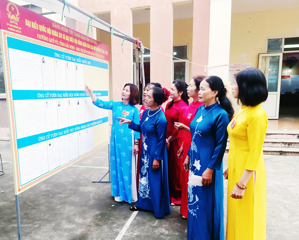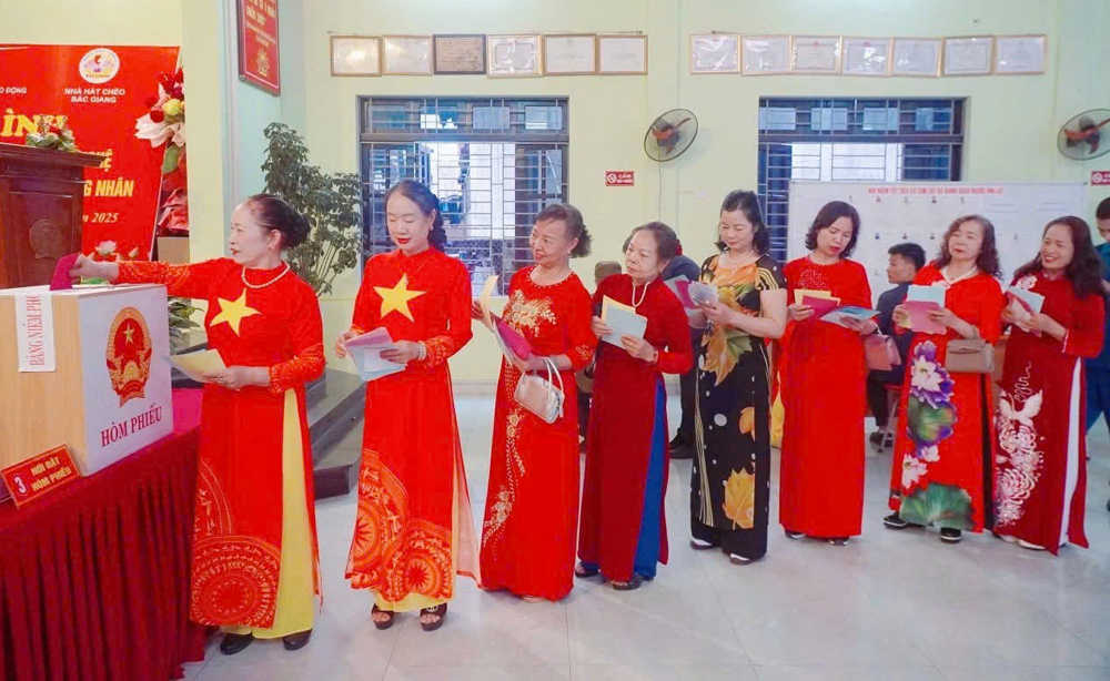 Tại các phường, xã: Bắc Giang, Kinh Bắc, Gia Bình, Cao Đức, Ngọc Thiện, Xuân Cẩm… phụ nữ các Tổ dân phố cùng nhau diện áo dài duyên dáng đi bầu cử. Còn các xã vùng cao như: Tây Yên Tử, Dương Hưu, An Lạc, Lục Sơn, Sơn Động… chị em lại rực rỡ trong trang phục truyền thống, có mặt tại điểm bỏ phiếu từ sớm. Bên cạnh việc thực hiện nghiêm túc quy trình “6 bước” theo hướng dẫn bầu cử, các hội viên nòng cốt tại cơ sở tích cực tham gia hướng dẫn cử tri thực hiện bầu cử và tuyên truyền về quy định bầu cử.
