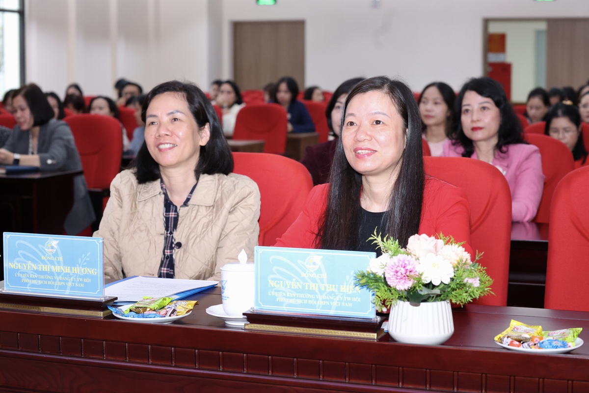 Các Phó Chủ tịch Hội LHPN Việt Nam: Nguyễn Thị Minh Hương (bên trái) và Nguyễn Thị Thu Hiền dự chương trình
