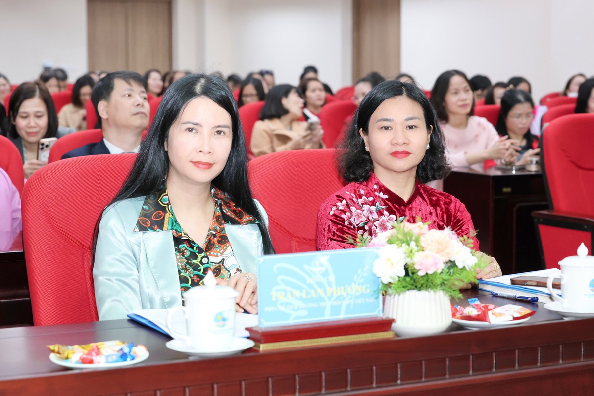 Bà Nguyễn Thị Tuyến (bên phải), Ủy viên TƯ Đảng, Phó Chủ tịch UBTƯ MTTQ Việt Nam, Bí thư Đảng ủy, Chủ tịch Hội LHPN Việt Nam và bà Trần Lan Phương, Phó Chủ tịch Thường trực Hội LHPN Việt Nam, dự chương trình