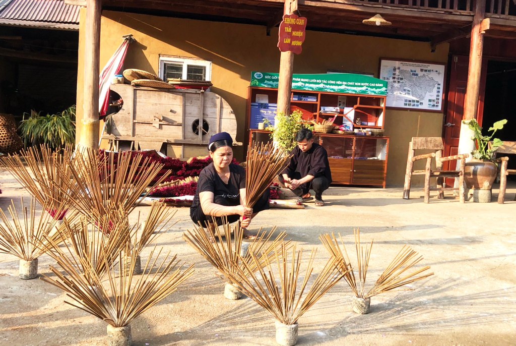 Hộ chị Hoàng Thị Bẩy, làng nghề làm hương thơm Phja Thắp, xã Quảng Uyên sản xuất hương thơm đạt sản phẩm OCOP kết hợp với làm Homestay đón khách du lịch trong và ngoài nước đến trải nghiệm.