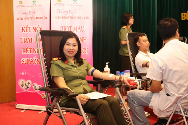 Hội viên Hội Phụ nữ Cục Tổ chức cán bộ tích cực tham gia hiến máu tình nguyện.